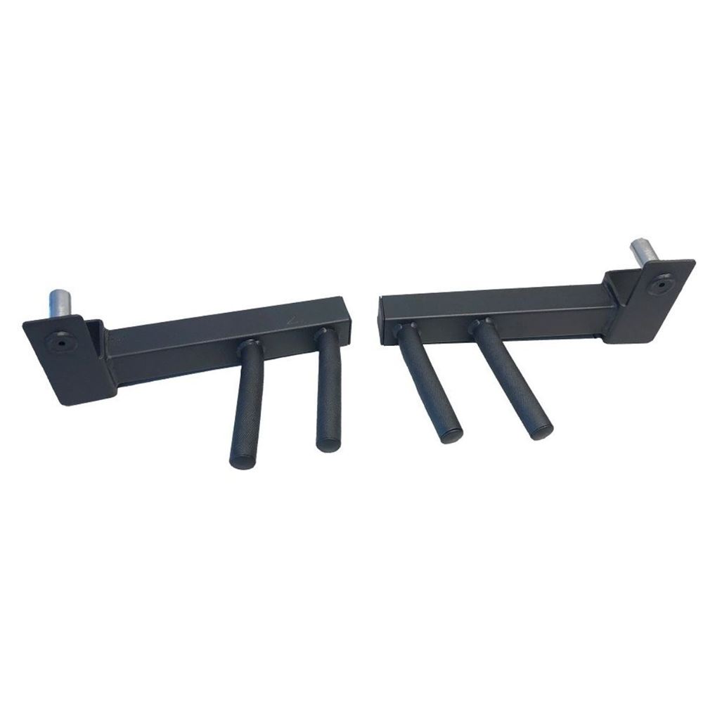 Abilica Dip-Attachment 40 Abilica Dips-Attachment är tillbehöret som ger dipsmöjligheter till din PowerRack 40, HalfRack 40 och FoldableRack 40. Dip-Attachment 40 har två olika utåtvinklade handtag som ger en bredd på 55-60 cm och 75-80 cm. Detta gör det enkelt för dig att hitta den bredd som passar dig bäst. Genom att ha två olika handtag kan det som inte används för dips användas för att fästa gummiband för assisterande dips. Abilica Dip-Attachment passar alla ställ som har ramstorlek 60×60 mm med 16 mm diameter hål. Säljs i par. SPECIFIKATIONER Mått monterad: 27 x 22 x 5 cm per handtag (L x B x H) Ramstorlek: 50 x 50 mm Ståltjocklek: 2 mm Max belastning: 200 kg P Produktvikt: 5 kg Abilica Premium: Ja