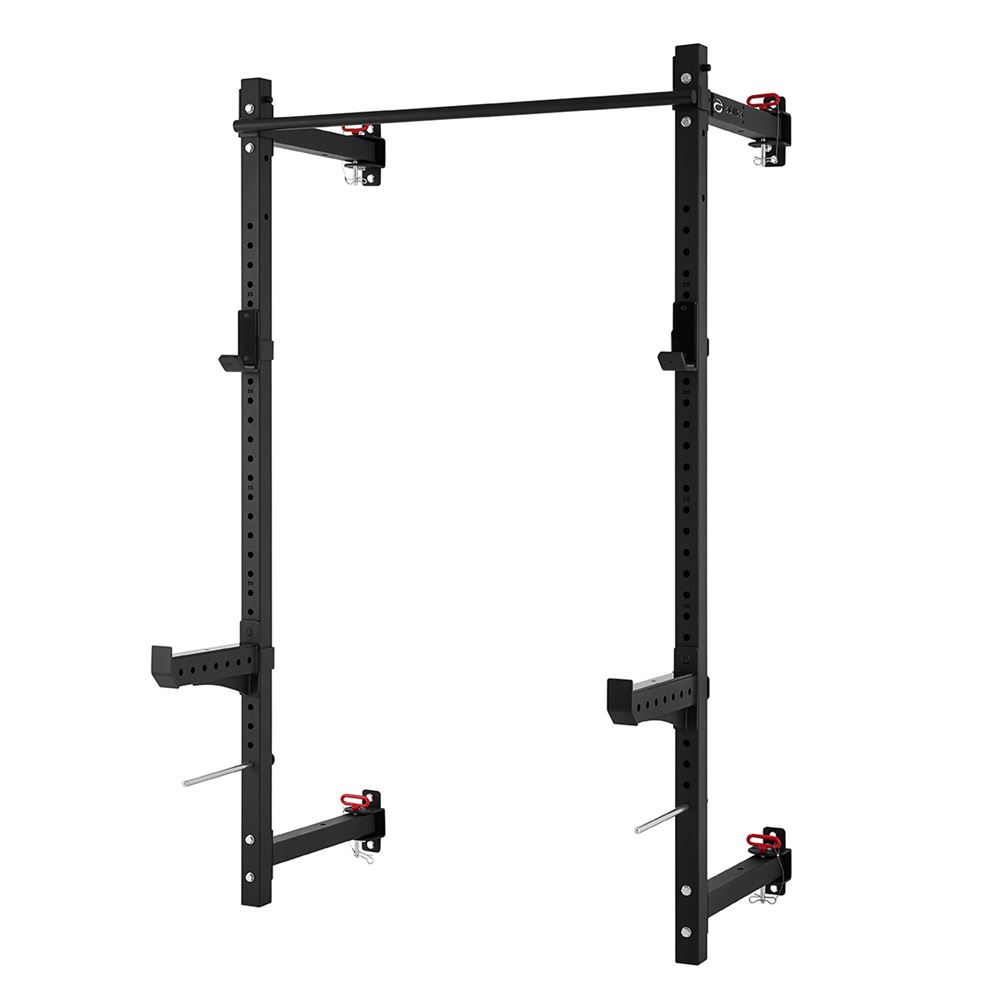 Abilica FoldableRack 50 är ett stabilt, hopfällbart rack som är perfekt för dig som vill utnyttja utrymmet maximalt i träningsrummet eller garaget. FoldableRack 50 låter dig utföra alla övningar du kan göra i ett fullt rack, såsom knäböj, bänkpress, militärpress, pull-ups med mera. FoldableRack 50 är ett robust rack som är designat för att tåla hög belastning. Skivstångshållarna klarar en belastning på 250 kg, säkerhetsarmarna 250 kg och pull-up-handtagen 200 kg. När du är klar med att använda racket fälls det enkelt ihop genom att ta bort låspinnarna baktill på racket och ta av pull-up-stången. När Abilica FoldableRack 50 är hopfällt mäter det endast 15 cm ut från väggen. Det gör det enkelt för dig att utföra andra övningar i träningsrummet eller använda rummet till något helt annat. Racket har 4 fästpunkter som kräver 2 bultar vardera. Väggfästena till FoldableRack är 120 cm från varandra för att passa standard väggreglar. Vi rekommenderar att FoldableRack förankras med kraftiga träskruvar eller betongbultar beroende på väggtyp. Vid köp av Abilica Landmine-Attachment utökas övningsutbudet ytterligare med övningar som landmine, landmine thruster med mera. Två BandPegs för fäste av träningsband ingår, vilket gör det möjligt att träna med band på stången för att öka eller minska belastningen i den övre eller nedre delen av rörelsen. Denna produkt är inte avsedd att förvaras utomhus och bör inte placeras på fuktigt/vått underlag. Specifikationer Mått monterad: 101 x 130 x 216 cm (L x B x H) Mått hopfälld: 15 x 130 x 216 cm (L x B x H) Ramstorlek: 60 x 60 mm Ståltjocklek: 2,5 mm Håldiameter: 16 mm Antal justeringshål: 29 Skivstångshållare (J-hooks): 250 kg Säkerhetsarmar: 250 kg Pull-up-handtag: 200 kg Produktvikt: 53 kg Användningsområde: Hemmaträning och företag