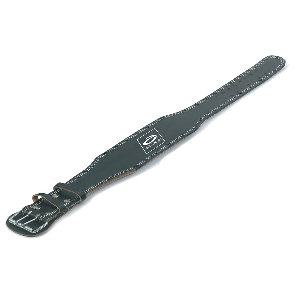 Träningsbälte i skinn med vaddering i rygg och dubbelt bältesspänne. Bredare i ryggen, 10 cm, ger bra stöd. Justerbar längd S/M 72-100 cm L/XL 92-120 cm