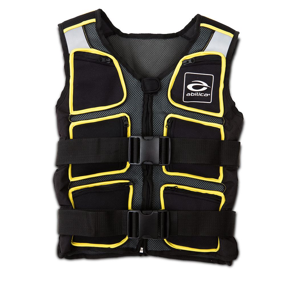 Justerbar viktväst från 1,25 kg-10 kg. Har två extra fickor för uppbevaring av pengar, nycklar och liknande. Två kraftiga spännen ger goda justeringsmöjligheter. Prodcerad i mjuk neopren. Nu med reflexer fram och bak. 8 viktpåsar i nylon fylld med järnsand. Västen kan tvättas för hand om du tar ut viktpåsarna. Max midja ca. 130 cm.