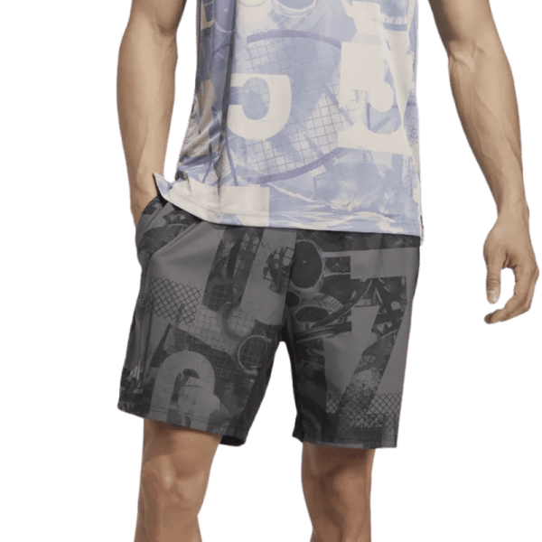 Snygga tennisshorts i grått, designat med ett tennisinspireraande mönster.