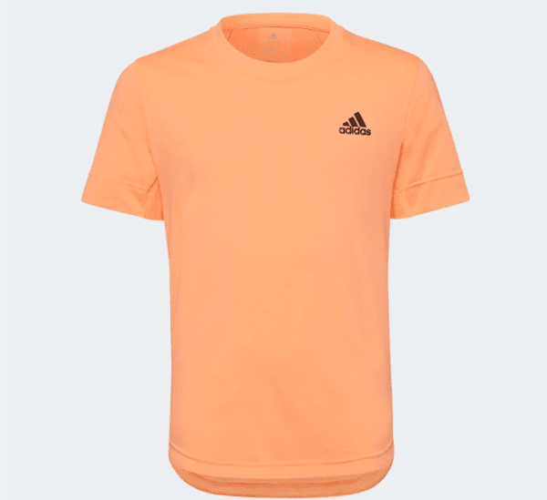 Den här adidas-t-shirten för juniorer stödjer spel över huvudet med en FreeLift-design som ger dig utrymme i axlarna för smash och hjälper till att stoppa den bakre fållen från att åka upp när du landar. Fuktabsorberande AEROREADY säkerställer att du tar dig an varje utmaning med full komfort.