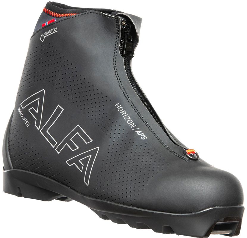 ALFA Horizon APS GTX Black är en mycket bekväm och varm pjäxa för långa dagar i spåren eller för dig som är lite mera frusen om fötterna. Pjäxorna är tillverkad med GORE-TEX membran samt fleece för att hålla fötterna varma samt att hålla högsta möjliga andningförmåga. Pjäxan har en isolerande mellansula och en andnings- och fuktabsorberande innersula. Ett luftisolerande skikt mellan yttre strumpan och innerstöveln ger extra isolering. Den höga pjäxan ger bra stöd och kontroll över skidorna och minskar risken för snö kommer in i pjäxan. Det yttre materialet är speciellt behandlat för att avvisa snö och smuts.