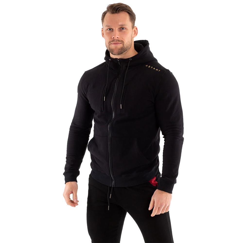 VAL AV STORLEK Modell: 184cm lång Väger 96kg Bär storlek L Vi rekommenderar att du väljer den storlek som du brukar ha. Apex Zip Hoodies är skapade för att ge maximal komfort och stil. Med 95 % bomull i materialet får du en mjuk, ventilerande och stretchig känsla som passar både träning och vardagsbruk. Den skräddarsydda designen ger en elegant och sportig look, medan det elastiska tyget ger dig full rörelsefrihet. Oavsett om du är på gymmet eller ute i det dagliga livet, erbjuder dessa hoodies både funktionalitet och komfort. Övrig information: Zip-blixtlås som håller den på plats Tjockt och strecthy material 95% Bomull av hög kvalitet Broderade logotyper Skräddarsydd design
