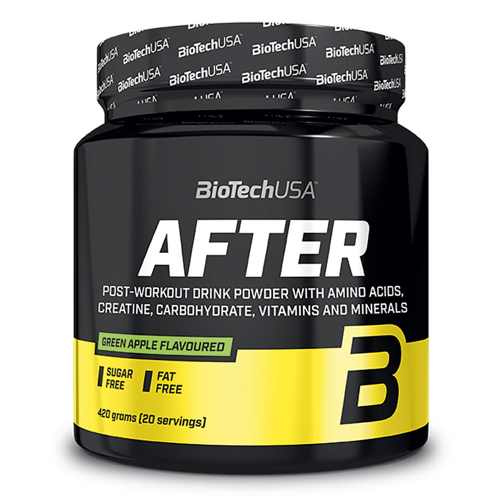 Smaksatt sockerfri dryck i pulverform för efter träning med aminosyror, kreatin, kolhydrater, vitaminer, mineraler och sötningsmedel. Varför rekommenderar vi After? Innehåller 18 aktiva ingredienser 7 olika tillsatta aminosyror 5,93 g glutaminkomplex Essentiella aminosyror, inklusive 4 g BCAA 3 g kreatin (mikroniserat) 4 vitaminer och 5 mineraler Utan konserveringsmedel Sockerfri* Fettfri** *Sockerfri: <0,5 g socker per 100 ml färdig dryck blandad med vatten. **Fettfri: <0,5 g fett per 100 ml färdig dryck blandad med vatten. Luta dig tillbaka och koppla av! BioTechUSA After är ett komplext, smaksatt dryckespulver för efter träning med aktiva ingredienser som gynnar din kropp efter ditt träningspass. Det innehåller essentiella aminosyror, komplexa kolhydrater och mikroniserat kreatinmonohydrat. Kreatin ökar den fysiska prestationen vid upprepade kortvariga och högintensiva ansträngningar. För en gynnsam effekt, ta 3 g kreatin dagligen. Varför behöver du aminosyror, inklusive BCAA? Proteiner är viktiga byggstenar i levande celler, och aminosyror är proteinernas byggstenar. Vår kropp kan producera vissa av dessa (icke-essentiella aminosyror), medan resten (essentiella aminosyror) endast kan tillföras via kosten. Bland de 9 essentiella aminosyrorna utgör BCAA en separat kategori. Förkortningen står för grenade aminosyror. Det finns totalt tre aminosyror i denna kategori: L-leucin, L-isoleucin och L-valin. Produkten innehåller dessa 3 aminosyror i förhållandet 2:1:1. Dessutom innehåller produkten både peptidbundet glutamin och L-glutamin. Glutamin är en aminosyra som också produceras av kroppen, men den kan även klassificeras som villkorligt essentiell, eftersom kroppens behov under vissa omständigheter, såsom högintensiv eller långvarig träning, kan vara större än vad kroppen själv kan producera. 1 Det totala aminosyrainnehållet i vår After-produkt är mer än 10 gram per portion. Utöver dessa ingredienser spelar de tillsatta vitaminerna och mineralerna också en viktig roll. Krom bidrar till att bibehålla normala blodsockernivåer, medan zink bidrar till normal proteinsyntes och normal kolhydratmetabolism. Du hittar även vitamin C, B12 och B6 bland de aktiva ingredienserna, vilka alla bidrar till att minska trötthet och utmattning samt till nervsystemets normala funktion. Folat i produkten bidrar till normal aminosyrasyntes. Produktens elektrolytinnehåll (mineralsalter) består av 3 mineraler: kalcium, magnesium och natrium, där det sistnämnda kommer från natriumcitrat. Magnesium bidrar till elektrolytbalansen, medan magnesium och kalcium bidrar till normal muskelfunktion. 1 https://pubmed.ncbi.nlm.nih.gov/2080048/ Vem rekommenderar vi After för? Direkt efter träning som kräver styrka och uthållighet. För vuxna vid högintensiv träning. Liksom alla BioTechUSA-produkter består After av säkra och noggrant utvalda ingredienser. Vad innehåller After? Portionsstorlek: 21 g | Portioner per förpackning: 20 | Daglig mängd: 1 portion (21 g) Näringsinnehåll 100 g RI* (100 g) 21 g Energi 1714 kJ/ 404 kcal 20% 360 kJ/ 85 kcal Fett 1,4 g 2% <0,5 g – varav mättat fett <0,1 g <1% <0,1 g Kolhydrater 24 g 9% 5 g – varav sockerarter 2,1 g 2% <0,5 g Protein 71 g 142% 15 g Salt 1,3 g 22% 0,27 g Vitaminer, mineraler 100 g NRV** (100 g) 21 g Vitamin B12 7,9 µg 314% 1,6 µg Vitamin B6 7,2 mg 513% 1,5 mg Vitamin C 381 mg 476% 80 mg Folsyra 585 µg 292% 123 µg Kalcium 762 mg 95% 160 mg Magnesium 356 mg 95% 74,8 mg Zink 16 mg 156% 3,3 mg Krom 95 µg 238% 20 µg Natrium 369 mg ** 77 mg *Referensintag för en genomsnittlig vuxen (8400 kJ/2000 kcal). **Inget NRV fastställt. Sockerfri: <0,5 g socker/100 ml färdig dryck. Fettfri: <0,5 g fett/100 ml färdig dryck. ÖVRIGA AKTIVA INGREDIENSER PER 1 PORTION (21 g): Glutaminkomplex (L-glutamin, glutaminpeptid) 5930 mg, BCAA 2:1:1 (L-leucin, L-isoleucin, L-valin) 4000 mg, kreatin 3000 mg, L-lysin 100 mg, L-metionin 100 mg, L-treonin 100 mg Hur använder man After? Rekommenderad användning: Blanda en portion (21 g = 2 strukna skopor = 2 rågade matskedar) med 300 ml vatten och drick direkt efter träning. Under vilodagar, drick på eftermiddagen. Använd en shaker. Ingredienser Grönt äpple smak: maltodextrin, L-glutamin 17,4%, mikroniserat kreatinmonohydrat 16,3%, glutaminpeptid (vete, gluten), instant L-leucin 9,4% (L-leucin, emulgeringsmedel: lecitin), L-isoleucin 4,8%, L-valin 4,8%, syra (citronsyra), arom, kalcium β-hydroxi β-metylbutyrat, kalciumsalter av ortofosforsyra, kalciumkarbonat, magnesiumoxid, L-lysin hydroklorid 0,6%, sötningsmedel (sukralos, acesulfam K), L-treonin 0,5%, L-metionin 0,5%, L-askorbinsyra, salt, färgämnen (tartrazin 1 , indigotin), zinkoxid, pyridoxinhydroklorid, pteroylmonoglutaminsyra, cyanokobalamin, krom(III)klorid. 1 Tartrazin: kan ha en negativ effekt på barns aktivitet och koncentration. Tillverkad i en anläggning som hanterar mjölk, ägg, gluten, soja, jordnötter, nötter, selleri, fisk, kräftdjur, blötdjur och livsmedel som innehåller svaveldioxid.