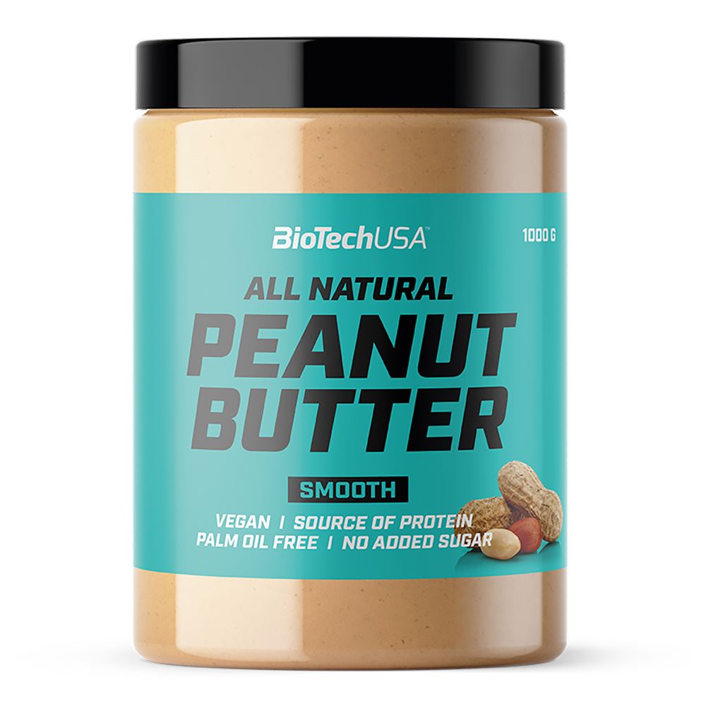 Jordnötssmör är otroligt mångsidigt! Det är ett perfekt topping till din morgongröt, du kan piffa upp din milkshake eller smoothie med det. Det är också ett utmärkt val för att baka muffins eller andra kakor. Och om du längtar efter lite Amerika, prova en peanut butter & jelly-toast. Bestäm själv hur du vill använda det! Varför rekommenderar vi produkten BioTechUSA Peanut Butter? Tillverkat endast med naturliga ingredienser Högt fiberinnehåll Proteinkälla Finns i crunchy- och smooth-varianter Utan tillsatt socker* Vegansk Utan palmolja Utan konserveringsmedel Glutenfri *Innehåller naturligt förekommande sockerarter! En riktigt naturlig proteinkälla Har du någonsin funderat på att prova amerikanernas favorit, jordnötssmör? Vänta inte längre – testa det veganska BioTechUSA Peanut Butter som endast innehåller naturliga ingredienser. Föredrar du en lättbredbar, mjuk konsistens, välj smooth-varianten, eller om du gillar när jordnötterna knastrar mellan tänderna, prova crunchy-varianten. Jordnötssmör är en utmärkt källa till protein och fiber, och kan användas på många olika sätt, vilket gör det enkelt att inkludera i din kost om du vill ha lite variation. Vem rekommenderar vi BioTechUSA Peanut Butter för? För dig som vill ha ett kvalitativt fettintag För dig som gillar att äta oljerika frön på olika sätt Vad innehåller en portion av BioTechUSA Peanut Butter? Näringsinnehåll 100 g RI* (100 g) 25 g Energi 2605 kJ/ 629 kcal 31% 651 kJ/ 157 kcal Fett 52 g 74% 13 g – varav mättat fett 4,9 g 25% 1,2 g Kolhydrater 7,9 g 3% 2,0 g – varav sockerarter 6,4 g 7% 1,6 g Fiber 8,8 g ** 2,2 g Protein 28 g 56% 7,0 g Salt 0,50 g 8% 0,13 g *Referensintag för en genomsnittlig vuxen (8400 kJ/2000 kcal). **Inget RI-värde har fastställts. Innehåller naturligt förekommande sockerarter. Utan tillsatt socker. Användning BioTechUSA Peanut Butter är otroligt mångsidigt! Det är ett perfekt topping till din morgongröt, du kan piffa upp din milkshake eller smoothie med det. Det är också ett utmärkt val för att baka muffins eller andra kakor. Och om du längtar efter lite Amerika, prova en peanut butter & jelly-toast. Bestäm själv hur du vill använda det! Förvara burken väl försluten på en torr, sval och skyddad plats. Efter öppning, förvara i kylskåp och konsumera inom 4 veckor. Oljeutfällning på ytan är en naturlig process. Rör om väl före användning. Ingredienser CRUNCHY: jordnötssmör (79,4%), krispiga jordnötsbitar (19,9%), salt. SMOOTH: jordnötssmör (99,3%), salt.