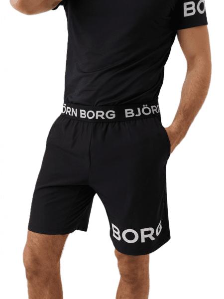 Tack vare det flexibla materialet, gjort av återvunnen polyester och elastan, tillsammans med stretchig jersey på insidan av benen, kan du röra dig obehindrat. Överst finns en följsam resår med Borg-tryck. Passformen är normal och midjan kan justeras med ett dragsnöre. Bollfickor och en invändig nyckelficka är praktiska detaljer.