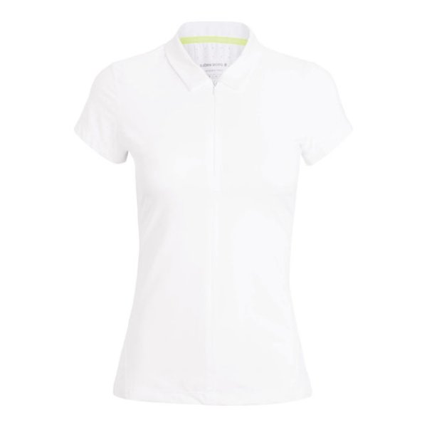 Så snygg tennistopp med kort ärm och liten nätt krage för damer. Den vita toppen ger ett klassiskt och feminint intryck. Passar utmärkt till alla idrotter eftersom den är tillverkad med funktionsmaterial som leder bort fukt effektivt. Dragkedja i halsen gör att du kan känna dig bekväm oberoende dagshumöret.