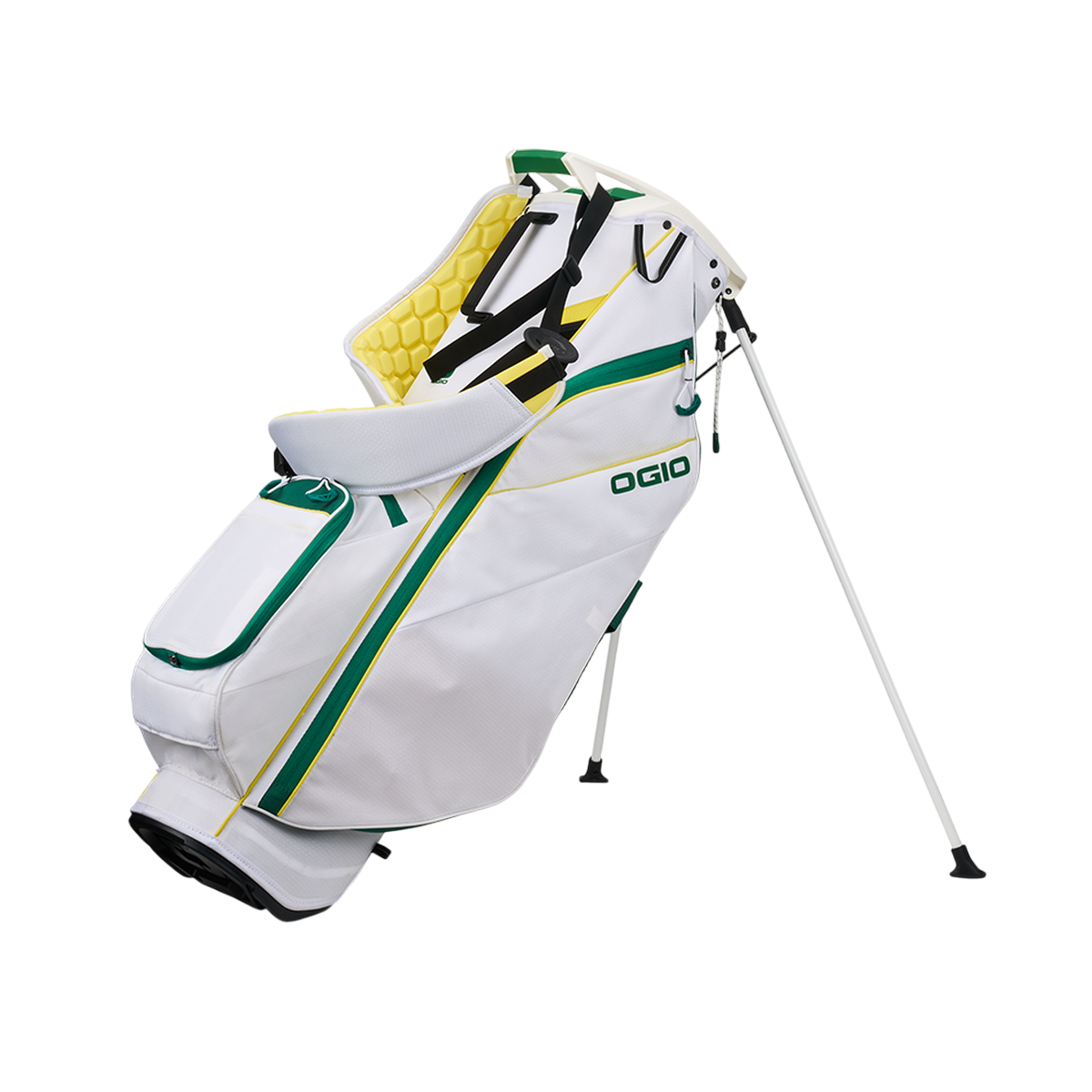 OGIO FUSE Standbag i Magnolia är en lätt bärbag med 4-vägs fullängdsavdelare, sex framåtvända fickor för snabb åtkomst, inklusive en bollficka och en fleecefodrad värdesaksficka, samt en lågprofilerad boll silo.
