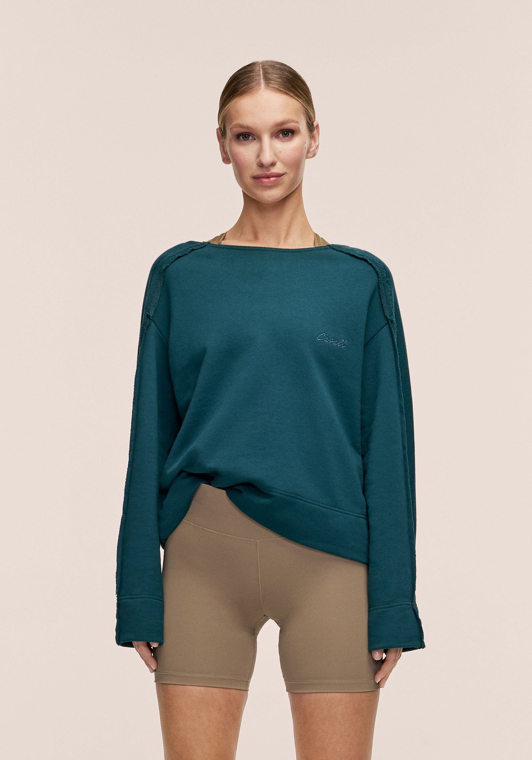 Casall Reversed Seam Terry Crew – Ocean Teal