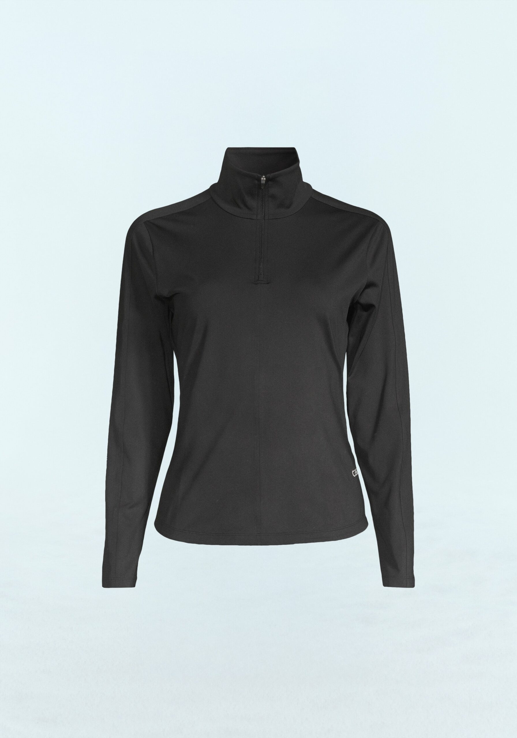Långärmad half-zip, tillverkad av ett stretchigt och mjukt material som är delvis återvunnet. Figurnära passform och hög krage. Designad för löpning utomhus.
