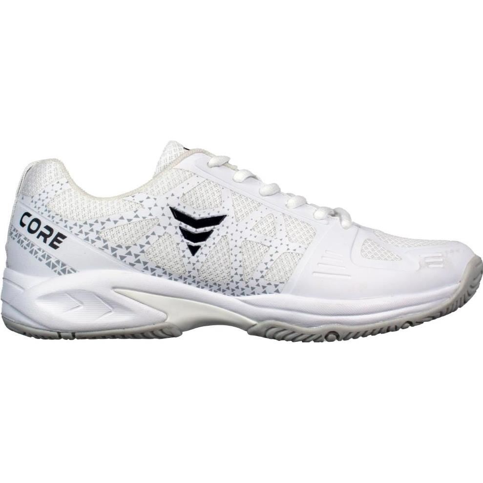 Mät först, beställ sedan! Innan du beställer – mät din fot och jämför med storlekstabellen (i bilderna). På detta sätt hittar du rätt storlek direkt och undviker eventuella returer. Så här mäter du enkelt: Ställ foten på ett papper, rita konturerna och mät den längsta punkten från hälen till tårnas spets. Lägg till 0,5–1 cm för rörelseutrymme och se motsvarande storlek i tabellen. Mellan två storlekar? Välj hellre den större. Den mindre kan bli för knapp – lite rymligare är ofta bekvämare att ha på sig. Core Tennis -och Padelskor Netpro Tennis och padel är snabba sporter med många snabba sidoförflyttningar och korta sprintar – så reaktionstid och balans är avgörande för alla spelare. Därför är det viktigt att välja sin utrustning med omsorg. En av de viktigaste utrustningsdelarna som gör spelet bekvämare är rätt skor för sporten. Core Netpro-skor är ett utmärkt val för både tennis och padel på grund av deras grepp och hållbarhet. En vanlig sneaker är vanligtvis inte tillräckligt greppvänlig för dessa sporter och ger kanske inte tillräckligt stöd för foten. Det är av dessa skäl som en sko som är utformad för sporten är ett mycket säkrare val än en sneaker och ett bekvämare val för rörlighet. Dessa Core Netpro-skor är lämpliga för användning på en mängd olika hårda underlag som konstgräs, betong, asfalt, trä och så vidare. Core Netpros stabila och bekväma passform säkerställer att dina fötter inte glider från marken och att din hållning förblir stabil även i hög hastighet. Skon är tillverkad av mycket andningsbar och slitstark polyuretan och ett flexibelt nätmaterial, som tillsammans skapar en bekväm och effektiv padel/tennissko. Produktinformation: Färg vit Material: PU, Mesh Storlekar: 36-47 Yta: Hårda banor (betong, asfalt, konstgräs, trä)