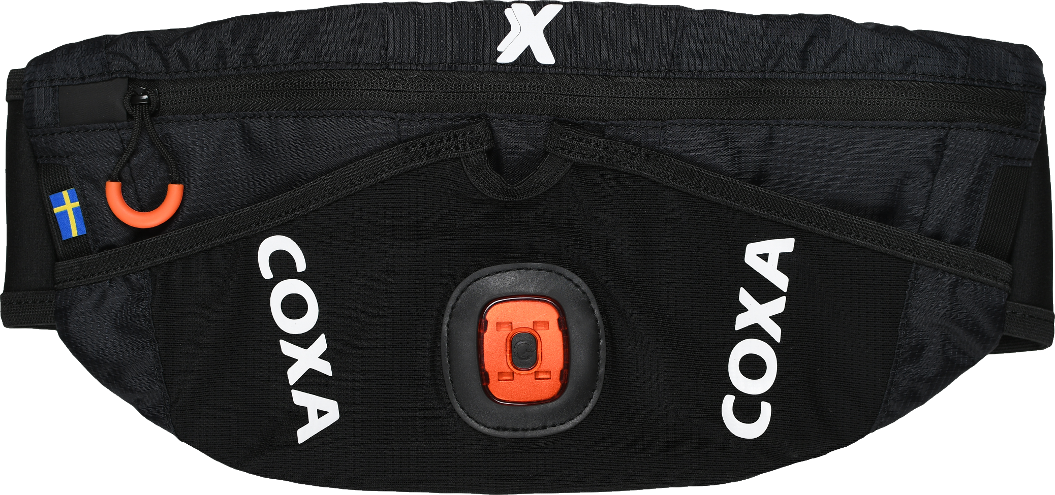 Coxa WR1 från Coxa Carry är en midjeväska med vätskeblåsa utvecklad och testad av idrottare i världsklass under hårda lopp och på tuffa träningspass. Den har en unik passform och komfort som är exceptionell tack vare stretchmaterial i midjebältet som har en kardborrstängning. Coxa WR1 har samma andningsbara 3D-mesh som i Coxa ryggsäckarna och ger effektiv stoppning som ger en skön känsla mellan ryggen och midjebältet. Mesh ger en bra vaddering som upplevs behaglig mellan rygg och väska. Materialet är slitstarkt och anpassat för extrema situationer. WR1 är utrustad med flera fickor, både externa för snabb åtkomst för gel och bars och inre fickor för din telefon, kort och nycklar. Midjebältet passar perfekt för skidåkning, löpning, cykel och vandring. 1,0 – 1,5 liters Coxa Carry vätskeblåsa med slang ingår 2 yttre fickor för gel och bars samt nätfickor USB-laddad LED-lampa för bättre synlighet när du åker cykel, rullskidor eller springer i mörker Inre fickor för telefon, kort och nycklar Kardborrestängning för ökad komfort Stretchmaterial med anti-glidtyg för perfekt passform Vattenavstötande Fyll inte vätskeblåsan med kokhet vätska, max 50 grader celsius Vätskeblåsans volym är 1,5 liter men vi rekommenderar uppfyllnad till ca 1,2 liter Unisex BPA / BPS / BPF fri: Ja OneSize, justerbar från 65-105 cm i midjestorlek.