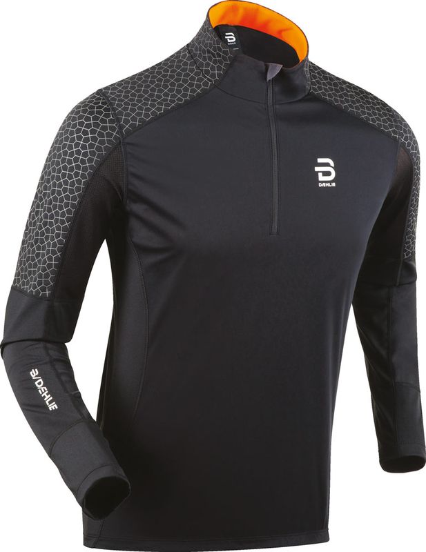 I Dahlie Top Mora Black för herrar hittar du en fodrad tävlingsdräkt som vips blir både en dräkt för tävling och träning. Jackan kommer med det viktiga vindskyddet framdel. Dahlie Top Moras är en Slim Fit-jacka med hög funktion för högintensiva träningar och tävlingar. Modellen kommer med vind och vattenavvisande softshell på framsidan, halv dragkedja och reflekterande 360 grader för ökad synlighet i mörkret. Strategiskt placerade mesh-paneler för perfekt ventilation och fukttransport. Sömmarna på Top Mora är mycket flexibla för rörelsefrihet och komfort. Silikongrepp på insidan av nederdel på ärmen för perfekt passform och grepp.