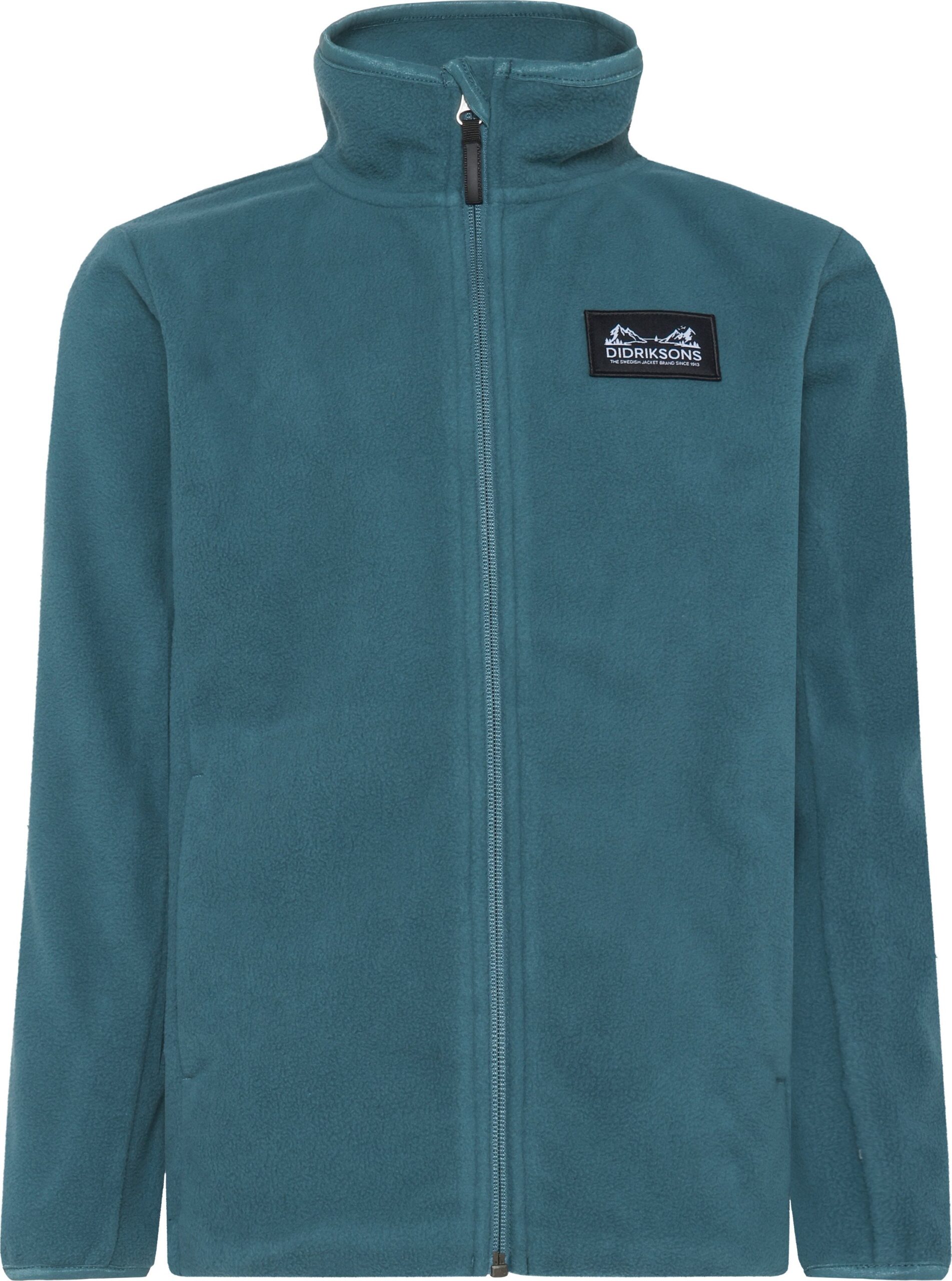Kids’ Malakit Full Zip från Didriksons är en vindtät fleecejacka för barn. Jackan är tillverkad av återvunnen polyester och har en krage som skyddar mot kyliga vindar, elastiska kantband i ärmsluten samt två fickor med dragkedja. Använd den som ett ytterplagg under torra och blåsiga dagar, eller bär den som ett isolerande mellanlager när vädret slår om. Tillverkad av 100 % återvunnen polyester Vindtät Krage Dragkedja mitt fram Två fickor med dragkedja Elastiskt kantband i ärmsluten Material: 100 % polyester
