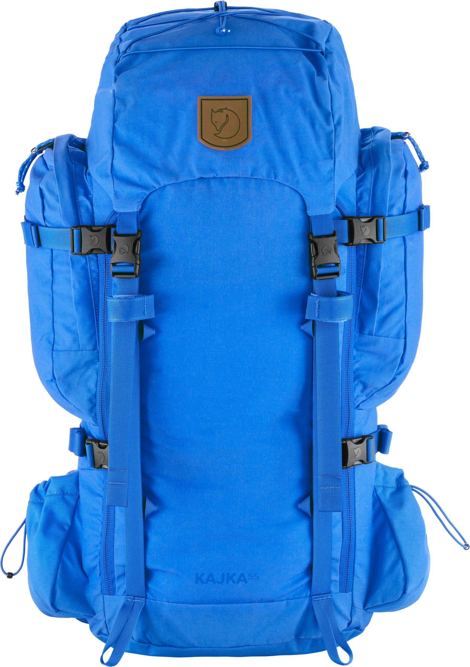Kajka 55 S/M från Fjällräven är en avancerad, uthållig och fullpackad Fjällräven ryggsäck med flera funktioner. Trots sitt lågmälda yttre är Kajka en funktionsspäckad ryggsäck. Kajka har hyllats av vandrare världen över och även lovordats i fackpress. Med en lätt design och innovativa träram blir detta garanterat en älskad ryggsäck till vandringen i flera år framöver. Bärsystemet är utformat för att avlasta även mycket tunga packning och det användarvänliga Perfect Fit Adjustment Systemet kan enkelt ställas in för att passa olika kroppar – både rygglängd och bredd mellan axelremmar. Det väl tilltagna höftbältet ger hög bärkomfort under långa vandringsdagar. Huvudfacket har toppmatning med snölås, stor vertikal öppning på fronten och ytterligare en nertill som gör det lätt att få överblick på utrustningen. Huvudfacket kan delas i en övre och undre sektion, där den undre har ett Wet/Dry-utrymme som håller isär fuktig och smutsig utrustning. Praktiska fickor med dragkedjor finns även på topplocket, sidorna och höftbältet. Topplocket kan tas av och bäras som midje- eller bröstväska när du vill ha extra koll på värdesakerna. Två kompressionsremmar på var sida som fäster i smala stavar för jämn och effektiv kompression, utan att sidfickornas öppningar blockeras. Fästmöjligheter på topplocket och under ryggsäcken Visselpipa på bröstrem och regnskydd med reflexer Slitstark, bekväm vandringsryggsäck utformad för att bära tung packning Unik, prisbelönad träram av FSC-märkt björk Avlastande, justerbart höftbälte och ergonomiska axelremmar Enkel att anpassa efter bärarens rygglängd och axelbredd Gjord av återvunnen polyamid Material 1: 100 % vinylalMaterial 2: 100 % polyamidFoder: 100 % polyamid