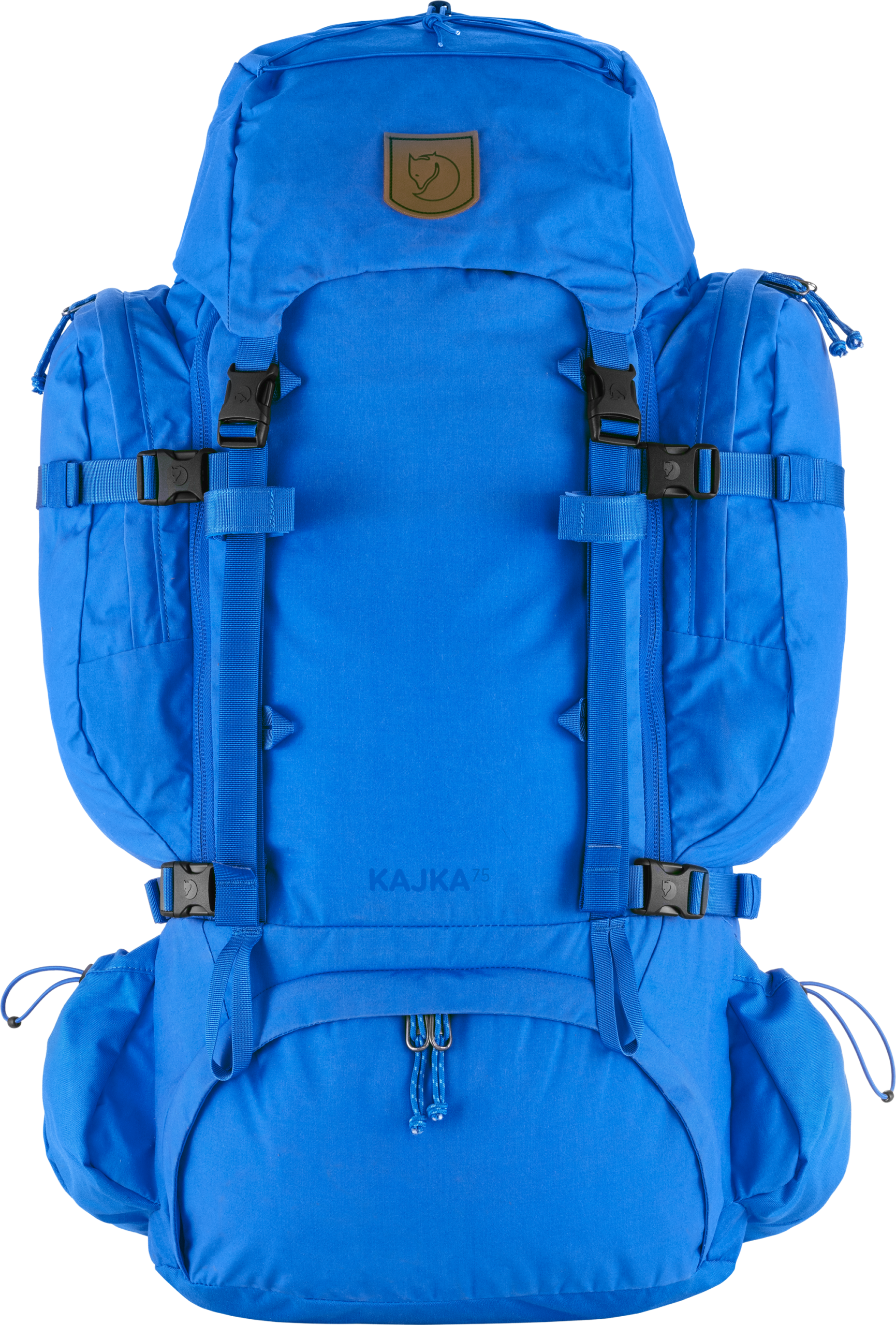 Kajka 75 M/L från Fjällräven är en avancerad, uthållig och fullpackad Fjällräven ryggsäck med flera funktioner. Trots sitt lågmälda yttre är Kajka en funktionsspäckad ryggsäck. Kajka har hyllats av vandrare världen över och även lovordats i fackpress. Med en lätt design och innovativa träram blir detta garanterat en älskad ryggsäck till vandringen i flera år framöver. Bärsystemet är utformat för att avlasta även mycket tunga packning och det användarvänliga Perfect Fit Adjustment Systemet kan enkelt ställas in för att passa olika kroppar – både rygglängd och bredd mellan axelremmar. Det väl tilltagna höftbältet ger hög bärkomfort under långa vandringsdagar. Huvudfacket har toppmatning med snölås, stor vertikal öppning på fronten och ytterligare en nertill som gör det lätt att få överblick på utrustningen. Huvudfacket kan delas i en övre och undre sektion, där den undre har ett Wet/Dry-utrymme som håller isär fuktig och smutsig utrustning. Praktiska fickor med dragkedjor finns även på topplocket, sidorna och höftbältet. Topplocket kan tas av och bäras som midje- eller bröstväska när du vill ha extra koll på värdesakerna. Två kompressionsremmar på var sida som fäster i smala stavar för jämn och effektiv kompression, utan att sidfickornas öppningar blockeras. Fästmöjligheter på topplocket och under ryggsäcken Visselpipa på bröstrem och regnskydd med reflexer Slitstark, bekväm vandringsryggsäck utformad för att bära tung packning Unik, prisbelönad träram av FSC-märkt björk Avlastande, justerbart höftbälte och ergonomiska axelremmar Enkel att anpassa efter bärarens rygglängd och axelbredd Gjord av återvunnen polyamid Material: 100 % polyamid