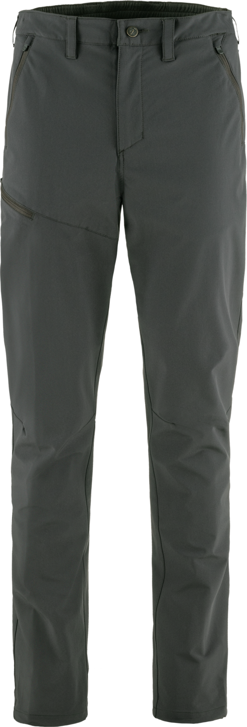Men’s Abisko Trail Stretch Trousers från Fjällräven är ett par lätta byxor med stretch för herr, som är designade för komfort och att vara lätta att packa ihop. De passar perfekt för vandringar i varmare väder när rörelsefrihet är av största intresse och är tillverkade av dubbelvävt stretchmaterial som är slitstarkt, torkar snabbt och skyddar benen i tuff terräng. Abisko Trail Stretch Trousers är elastiska i midjan och bekväma att använda med knappstängning, fickor i mesh med dragkedja för händerna och en laminerad ficka med dragkedja på låret för att undvika skav. Elastisk i sidorna och bak i midjan Bra rörlighet och slitstyrka Dubbelvävt material Gjorda av återvunnen polyamid Förböjda knän och avsmalnande ben Med den förbättrade passformen kan du gå upp en storlek om du har EU-storlek 46–52, fortsätta med samma storlek om du har storlek 52–56 och gå ner en storlek om du har storlek 58 eller större. Se till att konsultera storleksguiden innan du lägger din order. Material: 89 % polyamid, 11 % elastan