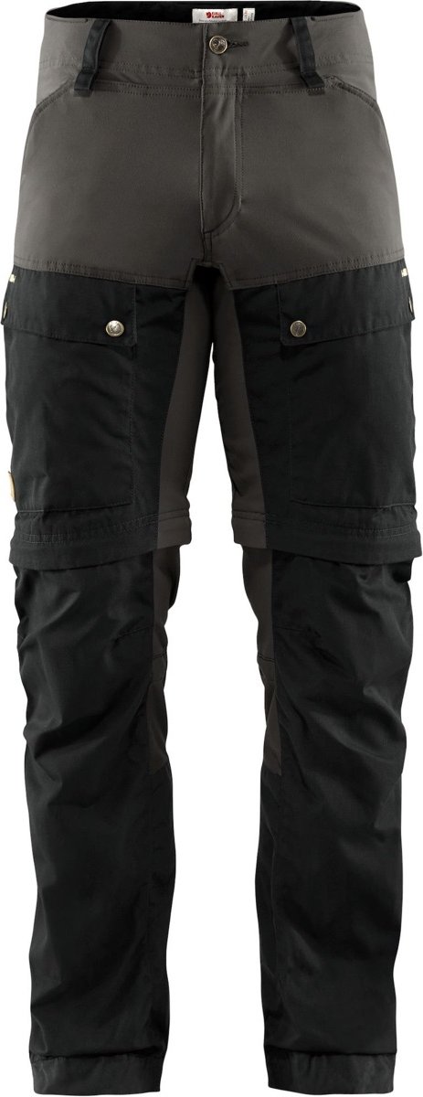 Men’s Keb Gaiter Trousers från Fjällräven är en avancerad vandringsbyxa med smart damaskfunktion. Sydd i stretch, G-1000 Eco och G-1000 HD med optimerad passform, ventilation och fickor. Men’s Keb Gaiter Trousers finns endast i benlängd long, och benen är därför 5+ längre än det angivna längdmåttet i storlekstabellen. Herrstorlekar. I varmt väder kan nedre delen av benet tas av för att förvandla byxan till ett par shorts, precis som på en vanlig zipoff-byxa. Den avtagna delen har en snörjustering i höjd med vaden som tillsammans med kängkroken i fållen förvandlar den till en damask som skyddar benen i snårig terräng.Stretch: 63% polyamid, 26% polyester, 11% elastanG-1000 Eco: 65% polyester, 35% bomull