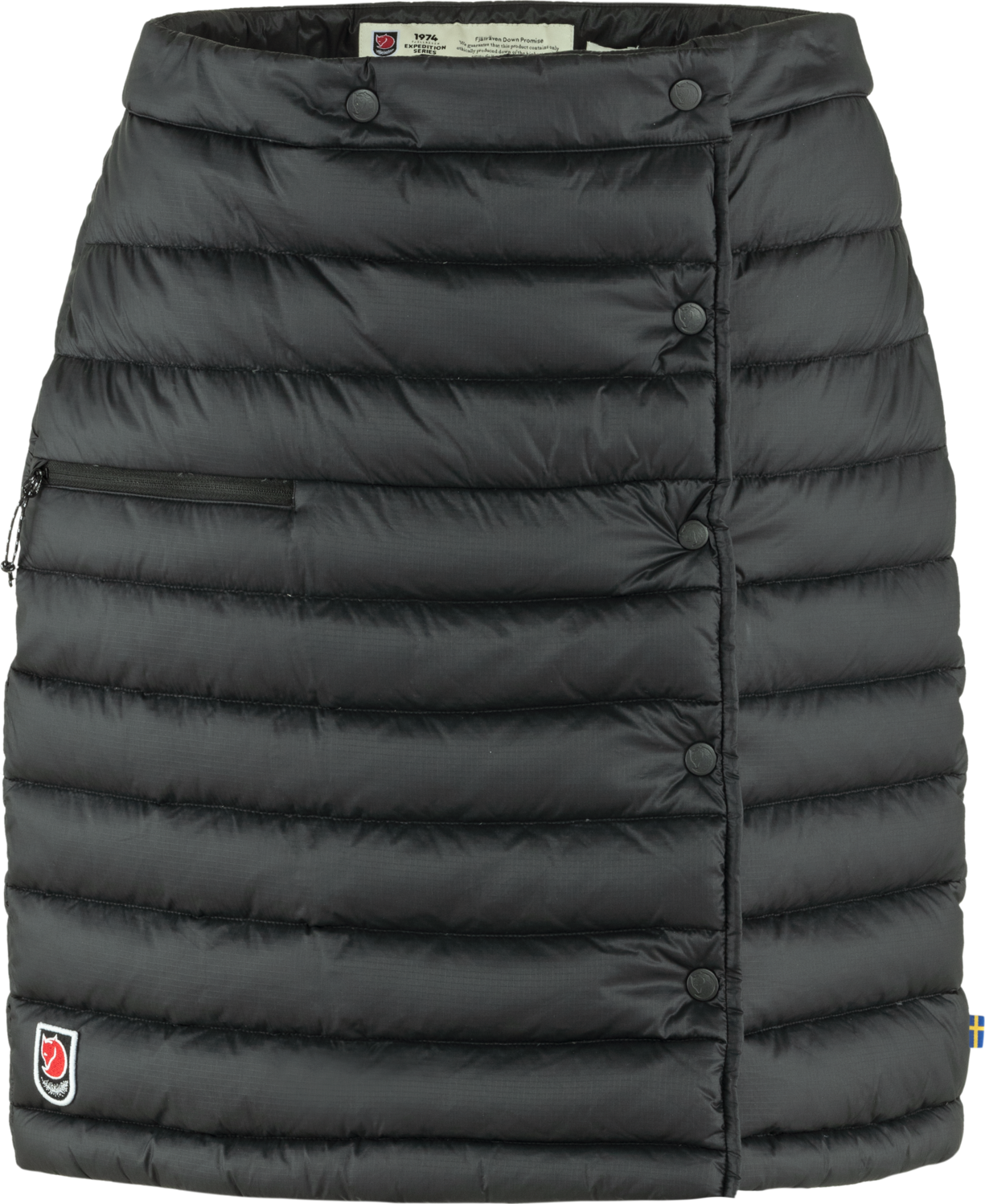 Women’s Expedition Pack Down Skirt är en lätt, packbar dunkjol från Fjällräven som passar utmärkt för vardagligt uteliv på vintern. Kjolens flexibla design ger utmärkt rörelsefrihet och gör det lättare att välja rätt lager till rätt temperatur. Förstärkt midja och elastisk dragskojustering för en perfekt passform. Ficka med dragkedja (och invändig nätficka) fungerar även som packväska i vilken kjolen packas ner i egen ficka.Material 1:100% PolyamidFyllning 1: 90% Dun, 10% FjädrarFyllning 2:100% Polyester