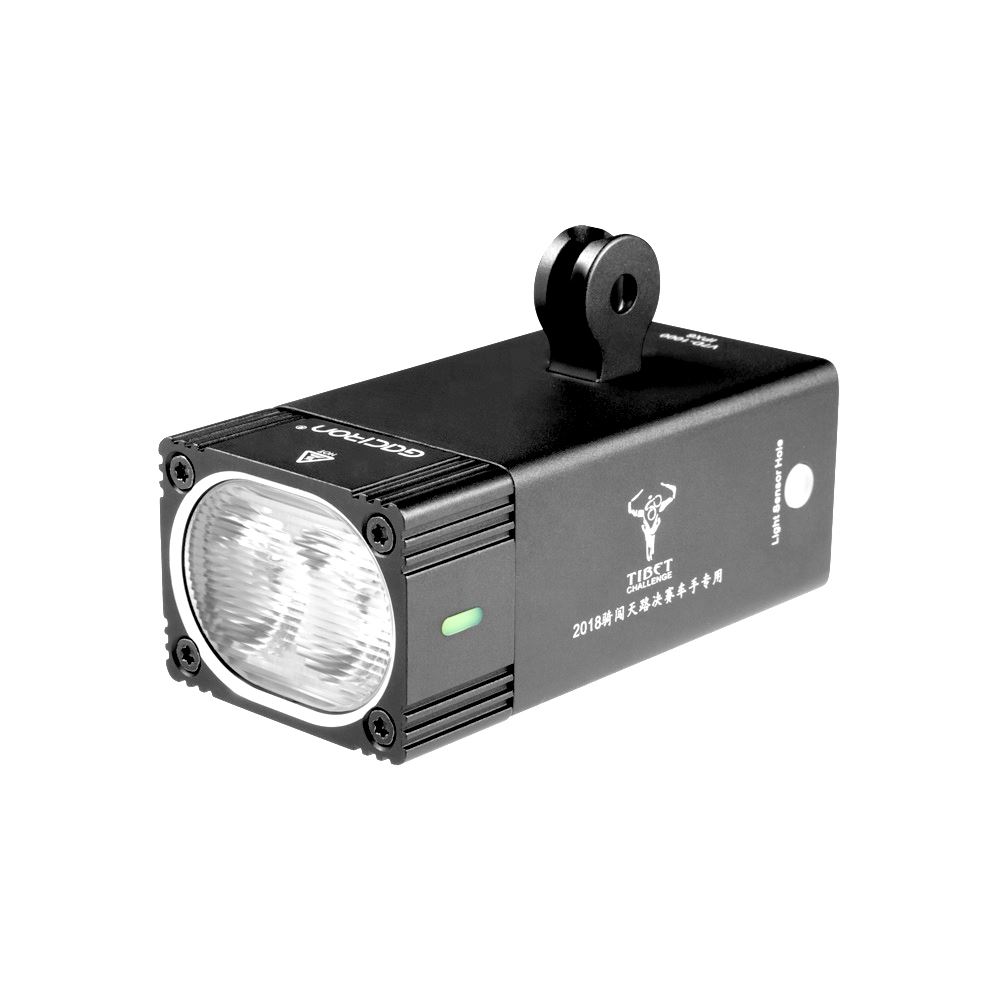 Gaciron Explorer X 1600 Tibet Challenge är en av våra allra kraftfullaste lampor för MTB och gravel – eller för dig som bara vill ha det bästa. Du slipper separat batteri och sladdar att hålla reda på och du kan sätter den på styret. Med 1600 lumen och dubbla LED med akryl-lins som både fokuserar och sprider ljuset 125 grader får du en perfekt ljusbild. Lampan är tillverkad i anodiserat aluminium som både ger extra lång hållbarhet och slitstyrka, och som säkerställer ljuskällans livslängd eftersom lampans LED får bättre kylning. Den är vattentät enligt IPX6 vilket innebär att den klarar de allra värsta höstregnen utan problem. Den har också en intelligent funktion som känner av ljuset och ställer automatiskt in det ljusläge som passar för tillfället – blinkande på dagen och helljus i kolmörker. Det är en fantastiskt välbyggd cykellampa med rätt känsla. Oavsett om du cyklar XC på de snabbaste stigarna, teknisk trail eller gravelbike i rasande tempo är detta en enastående kraftfull och fin lampa. Eller också kanske du vill försäkra dig om att ha den absolut yttersta nivån av säkerhet – eftersom den som lyser mest syns mest i mörker. Med sina 1600 lumen ger den här lampan en sjukt kraftfull och kristallklar ljuskägla med extrem räckvidd (över 120 meter) som både är jämn och väl spridd . Ordet strålkastare och helljus beskriver den egentligen bättre – se upp för du riskerar verkligen att blända mötande trafik. Därför är det fiffigt att du får med en fjärrkontroll som gör att du kan ändra ljusläge utan att flytta handen på styret vilket ökar säkerheten och hjälper dig enkelt blända av. Laddning sker med den medföljande USB-kabeln och den är fulladdad på 3,5 timmar. Batteriindikatorn (som också är laddningsindikator) varnar i god tid när du behöver ladda med blått sken (61-100%), gult sken (21-60%) och rött sken (1-20%) och du har brinntider på mellan 1 timma och 20 minuter i högläge till 30 timmar i blinkande läge. Det är en fantastiskt välbyggd cykellampa med rätt känsla. Den är dropptät enligt den internationella standarden IPX6 vilket gör att den går utmärkt att använda i de allra värsta ösregn du kan tänka dig. Du fäster den enkelt på styret (verktyg ingår).