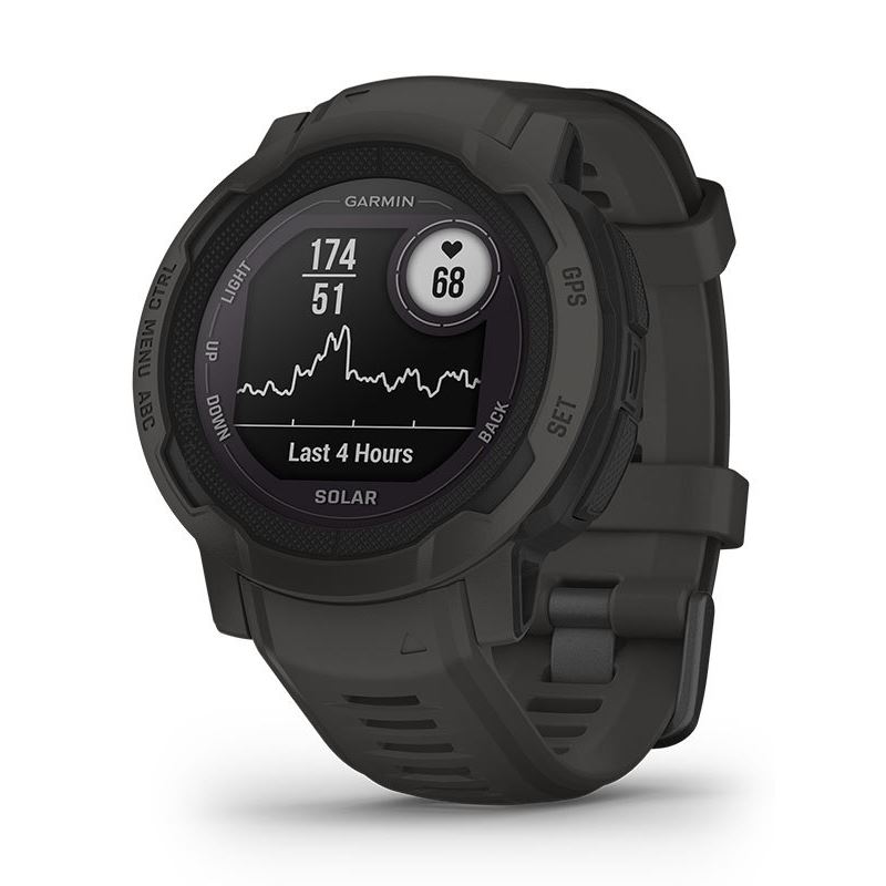Vad du än gör,så säg det med Instinct2. De här robusta smartwatches med GPS är tuffa nog att hålla jämna steg med dig och unika nog för att passa din stil.Dessutom har Instinct 2 Solar-seriens klockor solladdning, vilket ger dig obegränsad batteritid på de större modellerna och flera veckors batteritid på 2S så att du kan ta dig an livet med obegränsade möjligheter.Gör mer av det du älskar med förladdade aktivitetsprofiler för löpning, cykel, simning, styrketräning mm. Lev det ultimata uppkopplade livet med smarta aviseringar *2 och Connect IQ™ kompatibilitet. Förstå din kropp bättre genomhälsoregistrering hela dagen*3 för energinivåer, stress, sömn, puls Ox *4 och mycket mer. Klockan är tålig, så du kan köra på precis som du tänkt. Träna med en smartklocka som har inbyggda sportappar på handleden. Smartaviseringar så att du inte missar något viktigt. Tänj på gränserna utan att tappa bort dig med hjälp från fler satelliter. Förstå din kropp bättre med en smartwatch som registrerar din hälsa dygnet runt. Med obegränsad batteritid i smartwatchläge via solenergiladdning behöver upplevelsen aldrig ta slut. EXTREMT LÅNG BATTERITID Längre batteritid för längre äventyr. Med den större SOLAR modellen får du obegränsad batteritid och med Instinct 2S flera veckor i smartwatch läge *1. GARMIN PAY™ KONTAKTLÖS BETALNING Med en Instinct Solar kan du glida igenom kassaköerna och använda Garmin Pay kontaktlös betalning om du är ansluten till en kompatibel bank *6. DESIGNAD FÖR DIG Djärva färger, olika storlekar och stark kontrast i displayen ger dig möjligheten att visa världen att du gör saker på ditt vis. CONNECT IQ™ STORE Hämta anpassade urtavlor, lägg till datafält, hämta appar och widgets från appen Connect IQ Store på din kompatibla smartphone, INBYGGDA SPORTAPPAR Gör det du älskar med förladdade aktivitetsprofiler för löpning, cykel, simning, styrketräning, multisport, inomhusklättring, virtuell löpning, golf, yoga, Pilates och mer. VO2 MAX Träna smartare med VO2 max, en indikator på hur du kan prestera. Tar även med temperatur och höjd i beräkningarna av din prestation. ÅTERHÄMTNINGSTID Efter varje träningspass, återhämtningstid låter dig veta när du är redo för ett nytt hårt träningspass. Den tar även med träningsintensitet och andra faktorer som stress, daglig aktivitet och sömn i beräkningarna. MTB DYNAMIK Ger dig detaljerad mätdata samt Grit™ och Flow™ efter varje MTB-pass plus mäter svårighetsgrad på spåret och hur smidigt du tar dig ner, vilket ger dig en poäng att slå nästa gång du tränar. AVANCERAD SÖMNREGISTRERING Få en full fullständig sömnsammanställning över dina sömnstadier, från lätt till djup och REM sömn. Se allt på en särskild widget. ANDNINGSFREKVENS Se hur du andas under dagen, under sömnen, andningsövningar och yogaaktiviteter. KONDITIONSÅLDER Den här funktionen använder kronologisk ålder, din fysiska veckoaktvitet, vilopuls och BMI för att estimera om din kropp är yngre eller äldre än din faktiska ålder. Få tips hur du sänker din konditionsålder INTENSIVA MINUTER Mät hur många minuter av fysisk aktivitet du har, när du får dom och under vilken aktivitet, Du kan till och med se dem som ett datafält under tidsaktivitet. HÄLSOSPÅRNING FÖR KVINNOR Använd Garmin Connect appen för att mäta din menstruationscykel eller graviditet. Logga symptom, få tränings och närings tips. UTVECKLAD FÖR UTHÅLLIGHET Den här tåliga klockan är vatten resistent upp till 100 meter, värme och stöttålig. Plus, med ett fiberförstärkt tufft polymerhölje som är kemiskt förstärkt och ett reptåligt glas gör att den här enheten byggd för att hålla. MULTI-GNSS SUPPORT Oavsett om du vandrar, cyklar mountainbike, springer trail running eller åker skidor, kommer du ha access till de globala satellitsystemen (GPS, GLONASS and Galileo) för att kunna få bättre spår i mer utmanande områden än med enbart GPS. ABC SENSOR Navigera med ABC sensorer, inklusive höjdmätare för höjddata, barometer för väderövervakning och treaxlad elektronisk kompass. TRACBACK ® Nu behöver du inte gissa din hemfärd, genom att använda den här funktionen så navigerar du tillbaka i samma rutt som du kom. SMART AVISERINGAR Ta emot mail, SMS och aviseringar när klockan är ihopparad med en kompatibel enhet. SÄKERHETS OCH SPÅR FUNKTIONER När din klocka och telefon är ihopparade kan din liveposition skickas till dina kontakter manuellt eller – under valda utomhusaktiviteter — automatiskt med inbyggd incidentdetektering. PULSMÄTNING VID HANDLEDEN Få estimerad hjärtrymt *3 data tillsammans med varningar om din rytm är för hög eller för låg under vila. Häpnas över hur hårt ditt hjärta arbetar under dina aktiviteter. STRESS MÄTNING Variationen i din hjärtrytm används för att beräkna din stress nivå, så du kan se om du har en lugn, balanserad eller stressig dag. ENERGI ÖVERVAKNING MED BODY BATTERY ™ Optimera kroppens energireserver genom att använda pulsvariationer, stress, sömn, ocn annan data för att veta när du är redo för att vara aktiv eller när du behöver vila. PULS OX För höjdacklimatiering och sömnregistrering används en pulsoximetersensor *4 som skickar ljusstrålar mot handleden för att mäta hur väl kroppen absorberar syre