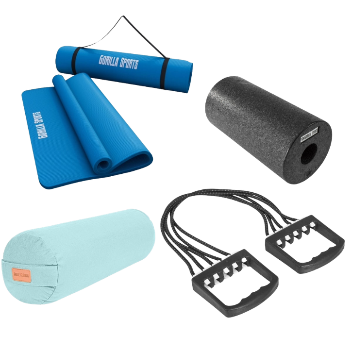 Rörlighet och Återhämtningspaket Träningsmattan XL Deluxe ger ett bekvämt och generöst underlag för stretch, yoga och annan rörlighetsträning. Fascia Rollern stimulerar musklerna, frigör spänningar och förbättrar blodcirkulationen före och efter träning. Yoga Bolster ger stöd för positioner, förbättrar hållning och ökar komforten vid stretching och meditation. Det justerbara gummibandet låter dig träna muskler och rörlighet med olika motståndsnivåer och passar perfekt för dynamiska stretchövningar. Med det här paketet får du allt du behöver för att förbättra rörlighet, återhämtning och muskelavslappning hemma! Använt produkterna hemma eller ta med produkterna till gymmet! Paketet innehåller: Träningsmatta XL Deluxe 190x100cm – Extra bred och lång yogamatta för komfortabel stretching och rörlighetsträning. Fascia Roller Svart – Foam roller som frigör muskelspänningar, förbättrar blodcirkulationen och ökar återhämtning. Yoga Bolster 65x20cm – Avlång meditations- och yogakudde fylld med speltskal, ger stöd och ökad komfort vid stretching och avslappning. Gummiband Justerbart 5 nivåer – Justerbart motståndsband med handtag för träning av muskler, rörlighet och stretchövningar. Träningsmatta XL Deluxe 190x100cm Material: Ftalatfritt, hudvänligt skum av nitrilgummi och PVC Mått (LxBxH): 190x100x1,5cm Bärsele ingår Vikt: 2,2kg Färg: Blå Fascia Roller Svart Färg: Svart med integrerad Gorilla Sports-logga Maximal belastning: 100kg Diameter: 15cm Längd: 29cm Vikt: ca 120g Material: PVC Yoga Bolster 65x20cm Material: Bomull och speltskal från Österrike Bärhandtag på ena kortsidan Överdrag tvättbart i 30°C Mått (LxB): 65x20cm Färg: Blå Vikt: 2,5kg Gummiband Justerbart 5 nivåer Handtagets diameter: 2,5cm Antal motståndsband: 5st Längd: 74cm Bredd: 11cm Det här paketet är perfekt för dig som vill träna rörlighet, stretch och återhämtning hemma på ett bekvämt och effektivt sätt!