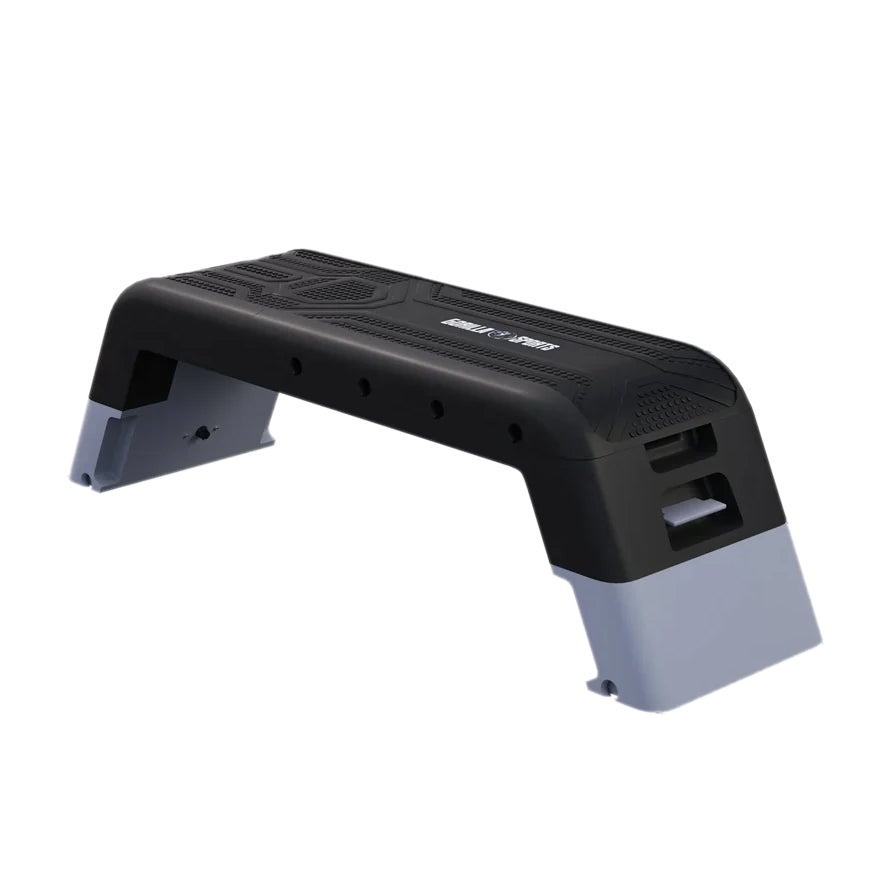 Stepbräda GS Justerbar Den här justerbara stepbrädan är det perfekta tillskottet till ditt hemmagym! Med sin justerbara höjd(20cm och 35cm) och möjlighet att användas som lutande, platt eller negativ step up bräda är den mer än en vanlig stebräda. Med klappbara fötter kan du enkelt justera det för olika träningspositioner. Den halkfria ytan ger extra friktion så du kan fokusera på att nå dina mål. Med en belastningskapacitet på upp till 200kg är den tillräckligt stark för att klara av de mest intensiva träningspass. Övrig information: Material: Termoplastisk gummi (TPR), polypropylen (PP), järn Klappbara fötter för varierande träningspositioner Justerbar plattform med lutningsbart ryggstöd Fyra integrerade fästpunkter för tillbehör Mått(LxBxH): 122x34x20+15cm Inbyggt förvaringsutrymme för tillbehör Maximal belastning: 200kg Vikt: 12,5kg Färg: Svart