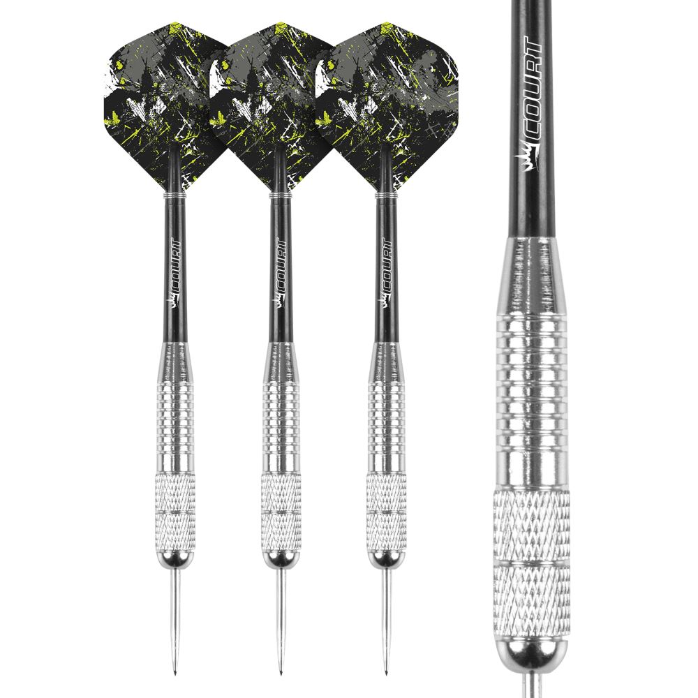 Court Steel Viper Dartpilar är utformade för spelare som uppskattar ett fast grepp och exakt kontroll. 23 g stålspetsade dartpilar ger den perfekta vikten för ett balanserat och effektivt kast. Den breda stålpipan är optimerade för att få ett bra grepp och jämna ut viktfördelningen, vilket ger en pålitlig kaströrelse. Skaften är precisionsviktade och pilens flights förbättrar stabiliteten och kontrollen under kastet. Slitstarka flights i 100 mikron ger utmärkt aerodynamik och en jämn, förutsägbar flygbana. Steel Viper serien av dartpilar är lämplig för nybörjare och mer erfarna spelare som söker pålitlig prestanda i tävling eller träning. Levereras med ett praktiskt förvaringsfodral för att hålla dina dartpilar organiserade mellan användning. Produktinformation 23 grams stålspetsar Bred stålpipa 100 mikrons flights 3 stycken dartpilar Förvaringsfodral