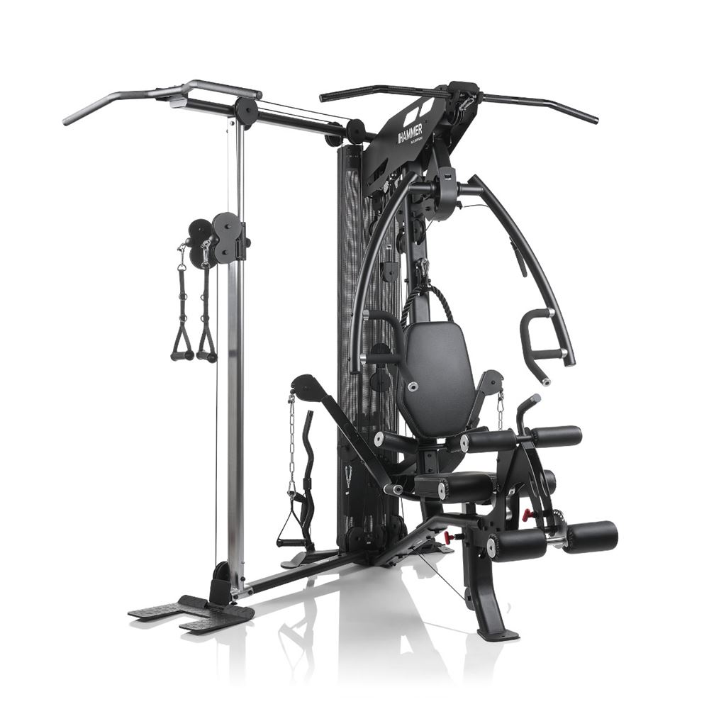 Pull-up-torn med kabel, pull-up-stång och roddfunktion 190° svängbara multifunktionella armar Tryck- och dragstation i en och samma modul Integrerad lat pulldown + buk- och triceps-modul Bencurler/stretcher + valfri benpress Maximal mångsidighet för din träning Kraftstationen HAMMER MAXIMUM Autark 7.0 sätter nya standarder för ditt hemmagym. Med ännu fler träningsalternativ, sofistikerad design och kompromisslös gymkvalitet erbjuder den dig helkroppsträning på högsta nivå. Komplett helkroppsträning – allt på en enhet Med Autark 7.0 kan du träna alla viktiga muskelgrupper: Rygg, bröst, ben, armar och mage. Oavsett om det är lat pull-ups, pull-ups, rodd, leg extensions, leg curls, butterfly eller magträning – du har otaliga träningsalternativ direkt hemma. Viktblocket på 80 kg i steg om 5 kg ger dig optimal lastjustering och kan vid behov utökas till 120 kg. Pull-up-torn med kabel, integrerad pull-up-stång och roddfunktion En särskild höjdpunkt hos Autark 7.0 är det extra pull-up-tornet med kabel, som ger ännu fler funktionella övningar till din träning. Den integrerade pull-up-stången gör att du effektivt kan stärka rygg, armar och bålmuskulatur. Med kabeldragen kan du utföra fria, mångsidiga rörelser, vilket gör din träning särskilt varierad och funktionell. En roddfunktion finns också tillgänglig för att komplettera din ryggträning på ett sätt som är skonsamt för lederna och effektivt. Med den här modulen får du ett fullfjädrat funktionellt träningsprogram direkt i ditt hemmagym – perfekt för att ta styrka, koordination och flexibilitet till en ny nivå. Lat pull-down-modul – för en stark rygg Använd den klassiska latstången för att utföra effektiva lat pulldown-övningar och stärka övre rygg- och bicepsmusklerna. Perfekt för både nybörjare och avancerade användare som vill få en rygg i toppform. Push/pull-modul – två rörelseriktningar för maximal träningsframgång Den smarta push/pull-modulen gör att du snabbt kan växla mellan bröstpress (push) och rodd (pull). – Push-position: fokus på bröst, axlar och triceps – Pull-position: fokus på rygg och biceps Den stabila styrningen gör att du kan arbeta rent och effektivt – perfekt för muskeluppbyggnad och definition. 190° svängbara multifunktionella armar – för funktionell träning De sidomonterade multifunktionsarmarna kan justeras flexibelt i olika steg och erbjuder en bred rörelsevinkel på 190°. Detta möjliggör ett stort antal övningar: bröstfly, reverse fly, överdrag, axeldryck och mycket mer – perfekt för funktionell och varierad träning. Modul för bencurl och bensträckare – starka ben för helkroppsträning Den integrerade benmodulen möjliggör målinriktad träning av quadriceps och benböjare. Den är snabb och enkel att justera och anpassar sig perfekt till dina träningsbehov. Som tillval kan du lägga till en benpress till stationen för att arbeta ännu mer intensivt med styrka och muskelmassa. Buk- och tricepsmodul – effektivt komplement för överkropp och bål Med kabelskivmodulen kan du utföra både intensiv magträning (crunch-rörelser) och målinriktad tricepsträning (pushdowns). Perfekt för att stabilisera din bål och forma dina armar. Ergonomi och komfort på studionivå Med den multijusterbara, ergonomiskt formade sitsen och ryggstödsdynorna anpassar sig Autark 7.0 perfekt till din kroppsstorlek och träningstyp. Lämplig för användare upp till 205 cm långa och 150 kg kroppsvikt. Studiokvalitet för ditt hem Den solida stålramskonstruktionen, högkvalitativa material och en egenvikt på 268 kg garanterar maximal stabilitet och säkerhet – även under intensiva träningspass. Så att du kan träna pålitligt och utan kompromisser. Tekniska detaljer Uppbyggd storlek (L x B x H): 200 x 170 x 217 cm (Utrymmeskrav 200 x 210 x 230 cm ) Takhöjd: 220 cm Viktskiva: 1 x 80 kg viktblock Max motstånd: 120 kg Extra vikter ingår: Ingen Kan uppgraderas med ytterligare vikter: 4 x 5 kg Max kroppsvikt: 150 kg Maximal höjd: 205 cm