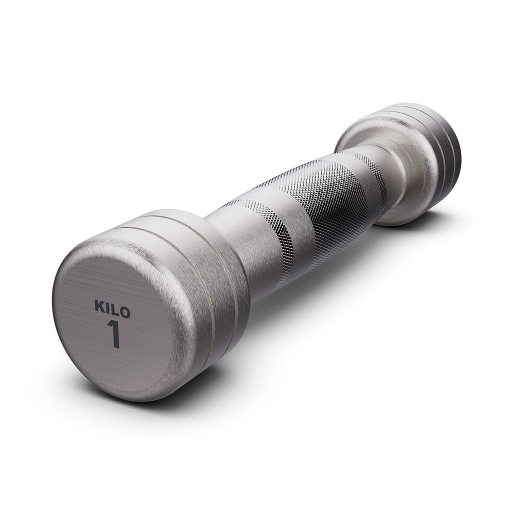 Hantlar från KILO i kemiskt krom. Viktskala 1-10 kg med 1 kilos viktökningningsintervall.