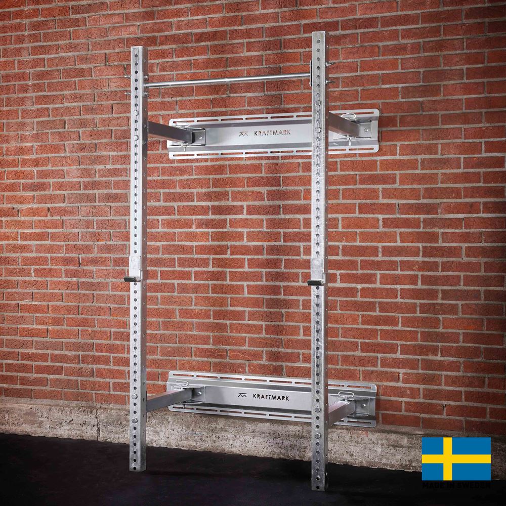 Galvaniserad Foldback squat Stand som du kan användas i alla olika väder utomhus. Väggplatta Bredd 149cm Höjd 233 cm Djup 70 cm (Utfälld) Greppdiameter 32 mm Pull-up Bar 108 cm Justerbar Pull-up bar Galvaniserad Bredd infälld 202 cm Kraftmarks riggtillbehör passar denna produkt Tillverkad i Sverige av Svenskt stål Innan användning bör vassa kanter ses över och slipas ner. Olika väggmaterial kräver olika typer av fästbeslag. Använd beslag som passar väggarna i ditt gym, säljes separat.