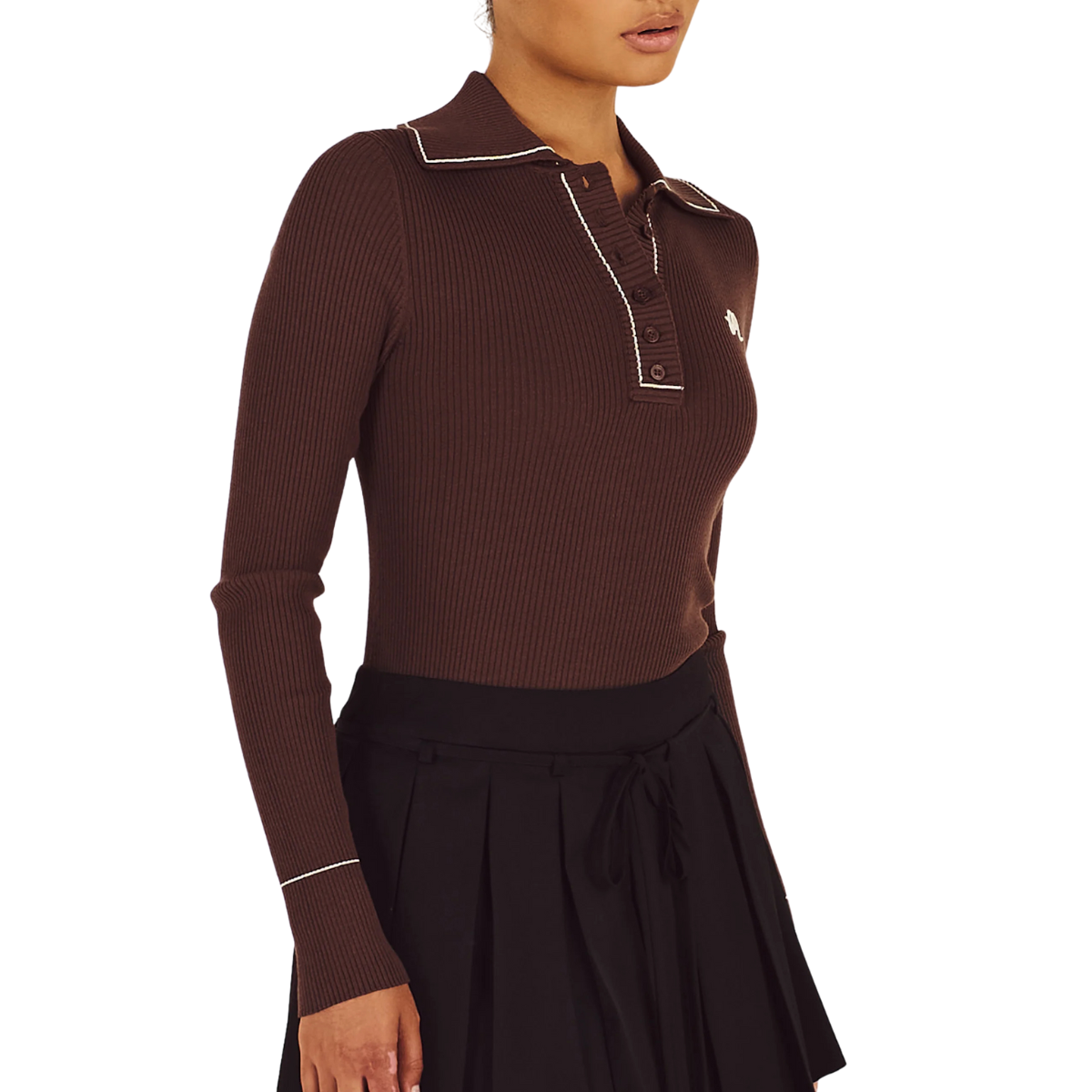 Agatha Knit Polo är ribbstickad för både struktur och form, och har en kontrasterande rand vid krage och ärmslut. Graverade knappar i knappslån ger en karakteristisk finish. En mångsidig favorit som passar lika bra på golfbanan som utanför.