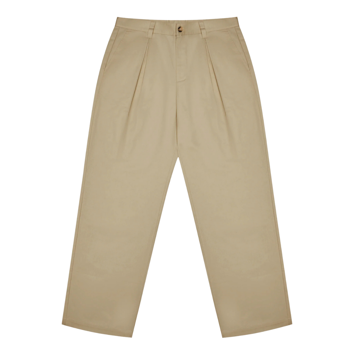 Med invändiga frontveck, bälteshällor och praktiska fickor kombinerar dessa byxor skräddad struktur med avslappnad komfort. Den raka, lediga passformen ger en modern silhuett som passar alla tillfällen.