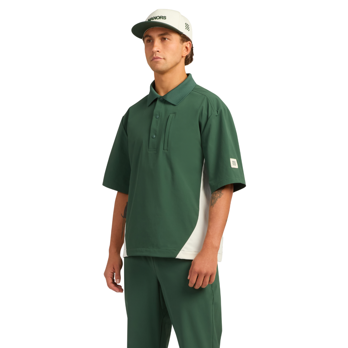 Upptäck Manors Shooter Shirt i den vackra Pine Green-färgen – vår besäljande jacka inspirerad av den mödelösa stilen från det sena 90-talets basket. Denna ikoniska jacka kombinerar avslappnad passform med mesh-foder och distinkt ryggbränding i en naturinspirerad grön ton för en unik look som står ut både på och utanför golfbanan.