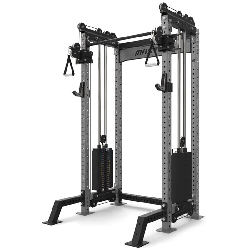 Bygg din träningsstation – precis som du vill ha den! Master Fitness VX 40 är ett multirack i grundutförande som enkelt kan byggas ut med ett brett utbud av tillbehör. Första bilden visar basmodellen – övriga bilder visar exempel på tillval du kan lägga till för att skapa din perfekta träningslösning. De uppräta ramtolparna i denna modul är stålborstade och klarlackerade – vilket ger hela maskinen ett exklusivt och äkta utseende. Allting är konstruerat för att vara funktionellt – enkelt att träna med och samtidigt en grym träningskänsla. Maskinen är utrustad med 2×90 Kg viktpaket med 1×2 i utväxling. De justera trissorna justeras vertikalt med enhandsgrepp och detaljerna som de räfflade handtagen ger en skön känsla under träningspasset. Samtliga linhjul är i aluminium vilket ger mjuk och följsam träning under många och långa pass. Ramstolparna är 70 x 70 mm och har tydliga siffermarkeringar vilket underlättar när korrekt höjd ska väljas. I basmodulen av VX 40 så ingår ett par J-hook för fristående skivstångsträning. Man kan med fördel addera ett par säkerhetsarmar för trygg skivstångsträning. Mått: Höjd 2234 mm Djup 1224 mm Bredd: 1310 mm Ramstolpar: 70×70 mm Håldiameter: 18 mm CC mått mellan hålen: 50 mm På några av bilderna här ser man vilka tillbehör som går att komplettera med.