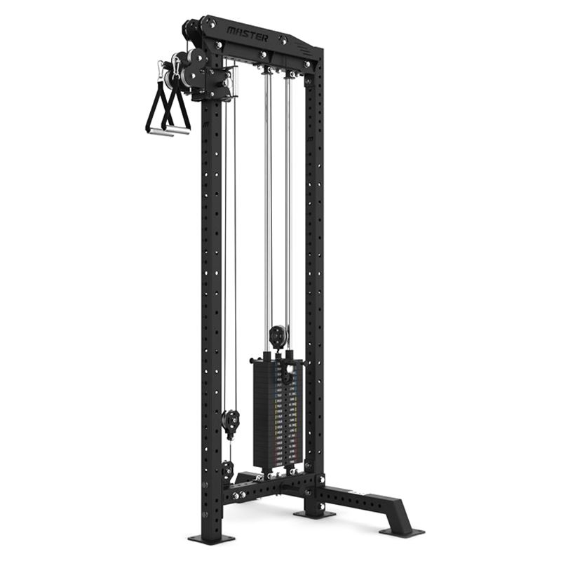 Upptäck vår fristående kabelmaskin som kan placeras helt fritt i rummet – idealisk såväl för hemmabruk som företag och föreningar. Höjden på hela kabelmaskinen är 2373 mm – systermodellen LX20 är en lägre variant. Maskinen är byggd med en robust 70×70 mm stålram som garanterar stabilitet och hållbarhet. Den är utrustad med ett ergonomiskt enhandsgrepp i rostfritt stål med räfflad yta, vilket gör det enkelt och säkert att justera kabelhjulen upp eller ner längs den främre ramstolpen. För en följsam och mjuk träningsupplevelse har maskinen exklusiva aluminiumhjul som ger en jämn rörelse i varje övning. Viktpaketet består av gjutjärnsplattor på totalt 90 kg, och du kan välja att träna med 50 % belastning via ett handtag – eller koppla ihop båda kablarna för att få ut 100 % av vikten. Denna flexibilitet gör maskinen perfekt även för rehabiliteringsträning. På toppen av viktpaketet finns två hållare för gummiband / powerband, man drar ned ett powerband runt en ensam hållare i nederkanten av viktpaketet, vilket gör det enkelt att öka belastningen för dig som vill träna riktigt tungt. Den maximala belastningen är hela 450 Kg Mått på monterad maskin Djup: 1240 mm Bredd: 1065 mm Höjd: 2373 mm