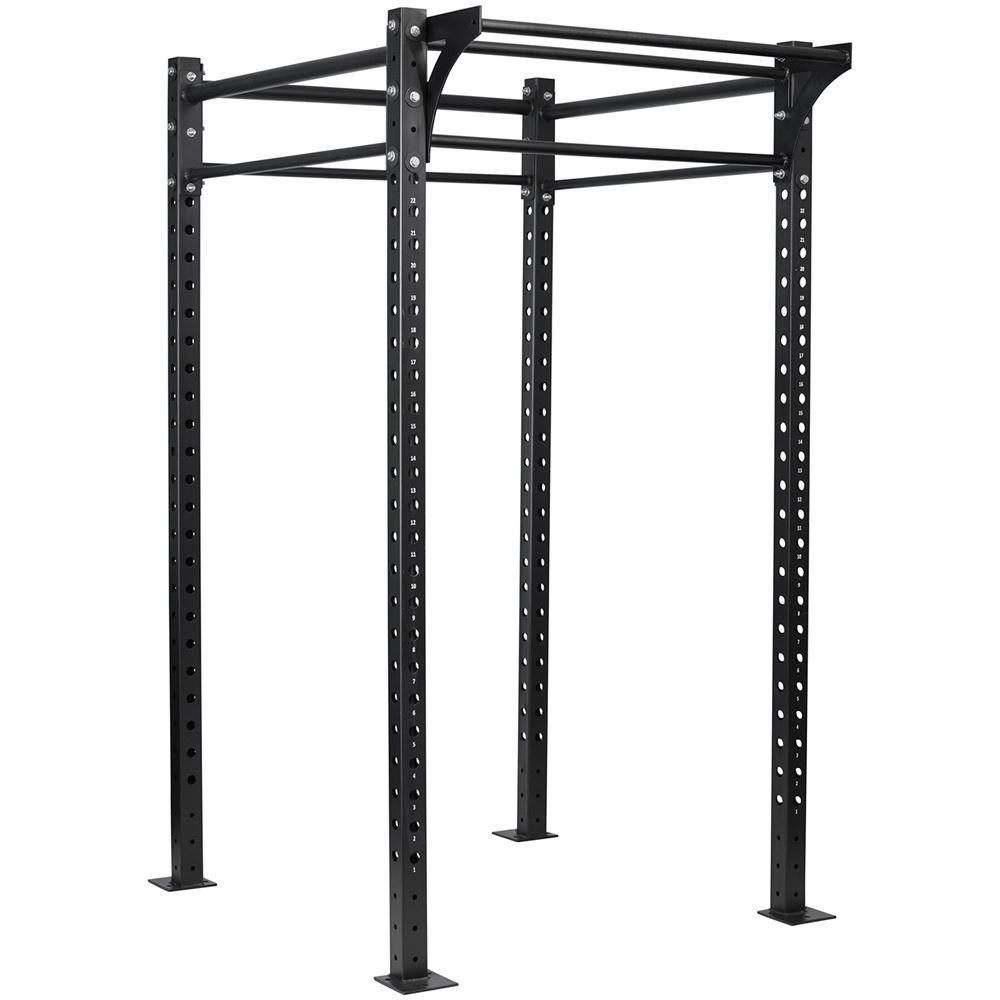 Bygg styrka och uthållighet med denna robusta pull-up rig, designad för att klara tuffa träningspass. Konstruktionen är tillverkad i kraftigt stål med pulverlackerad yta för maximal hållbarhet och motståndskraft mot slitage. De fyra vertikala stolparna är perforerade med jämna hål, vilket gör det enkelt att anpassa höjd och montera tillbehör som dip-bars eller extra stänger. Riggen har flera horisontella chinsräcken som ger möjlighet till olika grepp och övningar, perfekt för pull-ups, muscle-ups och funktionell träning. Den stabila basplattan gör att riggen kan förankras i golvet för extra säkerhet. Passar både hemmagym och professionella miljöer där kvalitet och flexibilitet är ett krav. Med denna rigg får du en pålitlig lösning för kroppsviktsövningar och styrketräning – bygg din egen träningsstation och ta din träning till nästa nivå.