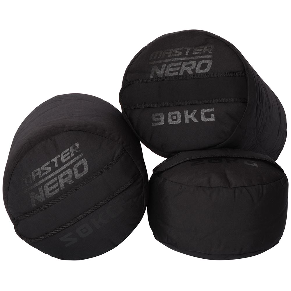 Master Nero Sandbag – från 20 till 120 kg – byggd för riktig råstyrka Utmana dig själv med samma typ av sandbag som används i professionella strongman-tävlingar. Master Nero Sandbag är designad för kompromisslös träning – här finns inga handtag, inga genvägar. Bara du, en tung säck och ren råstyrka. Det här är det ultimata träningsverktyget för dig som vill bygga funktionell styrka, grepp och uthållighet. Perfekt för att lyftas, bäras och kastas – gång på gång. Sandbagarna finns i 9 olika storlekar (20–120 kg) och levereras som tomma skal för att du ska kunna anpassa vikten efter din egen nivå. Varje säck har ett dubbelt hölje för maximal slitstyrka och lång livslängd. Det yttre skalet är utrustat med en kraftig dragkedja som skyddas av en bred kardborreflik. Inuti finns en separat innerpåse som fylls med sand – även den med dubbelt kardborrestängning för extra säkerhet. Rekommendation : Använd torr sand för bästa resultat och hållbarhet.