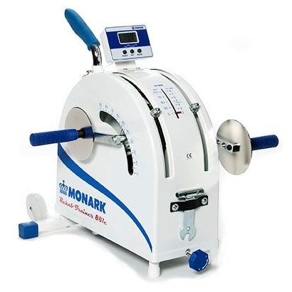 Beställningsvara med leveranstid ca 4 veckor. Monark Rehab Trainer 881E är en arm- och benergometer. Den ger möjlighet att individuellt anpassa träningen med kontinuerlig uppföljning och justering av träningsintensiteten. Personer med rörelsehinder i de nedre extremiteterna kan använda Monark Rehab Trainer för sin konditionsuppbyggnad genom att träna med armarna. Wattskala visar belastningen vid 50 rpm. Tungt välbalanserat svänghjul ca 11 kg. Vevarmarna kan ställas in både i längd och i önskad vinkel samt förställas individuellt i höjdled helt oberoende av varandra. Justering av bromskraften med ratt. Transporthandtag, justerbart i höjdled. Pulverlackerad. Praktiska transporthjul. Display Tid Ja Distans – Hastighet – RPM (Varv per minut) Ja Kaloriförbrukning – Watt – Puls Ja, pulsbälte ingår Antal program – Tekniska detaljer Motstånd Fjäder Svänghjul vikt 11 kg Praktiska detaljer Transporthjul Ja Mått L x B x H 54 x 47 x 55 cm Vikt 20 kg Max användarvikt – Garanti Användning i hemmiljö 1 års garanti 3 års reklamationsrätt mot ursprungliga fel Företagsgym, hotell, bostadsrättsföreningar, skolor, institutioner, idrottsföreningar och liknande 1 års garanti