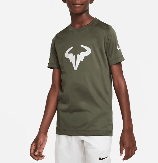 Passar både på och utanför tennisbanan för pojkar. Passa på alla Rafael Nadal Nadal fans som vill ha en T-shirt med rafa karaktäristiska Bull-logo framtill.