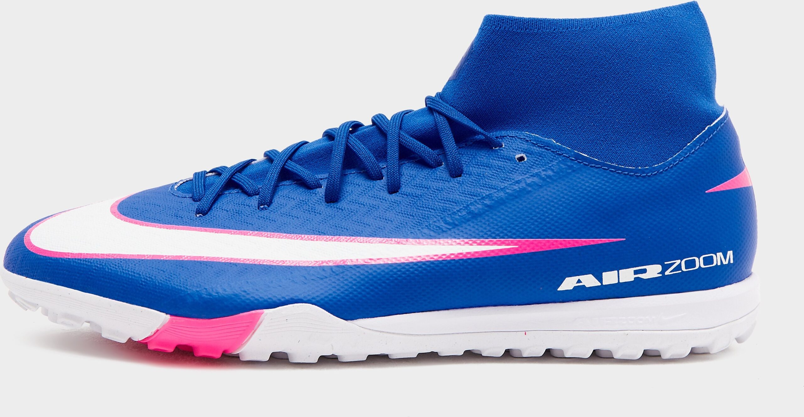 Take your game up a level with these men’s Mercurial Superfly 10 Academy TF football boots by Nike. In a bold Racer Blue and white colour combo, these boots have a textured NikeSkin upper that helps you control the ball at fast pace. A knit Dynamic Fit collar wraps around your ankle for a snug, supportive feel. And the rubber sole delivers essential traction. Finished up with Swoosh branding.