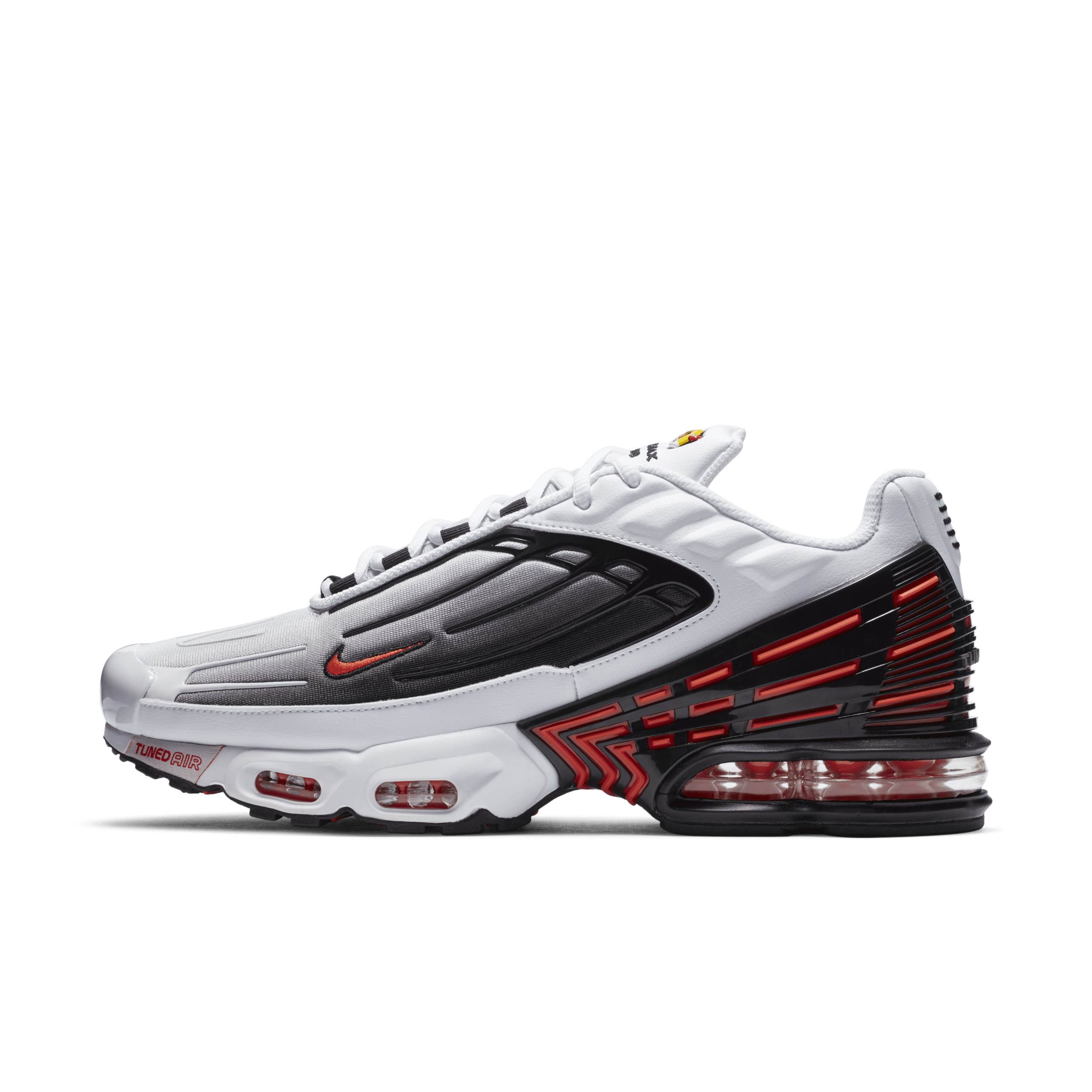 Nike Air Max Plus 3 har samma trimmade Air-teknik som dess föregångare och uppdaterar looken med TPU som är sammanfogad med ovandelen samtidigt som skon hyllar originalets klassiska färgtoning.