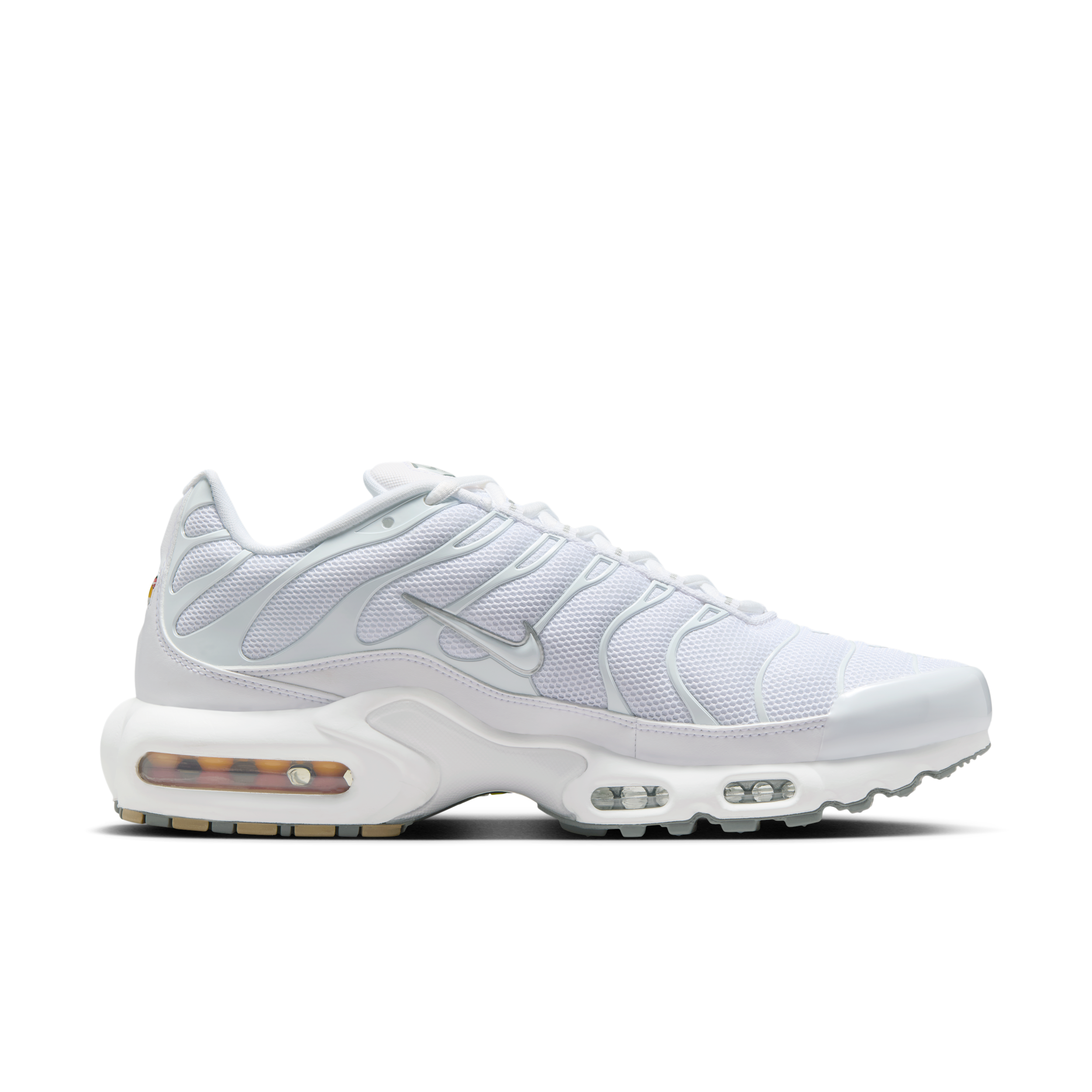 Visa din attityd med Nike Air Max Plus – en sko med Tuned Air som ger suverän stabilitet och dämpning. Med originalets vågformade design, TPU-detaljer och luftig mesh på ovandelen hyllar den en unik look.