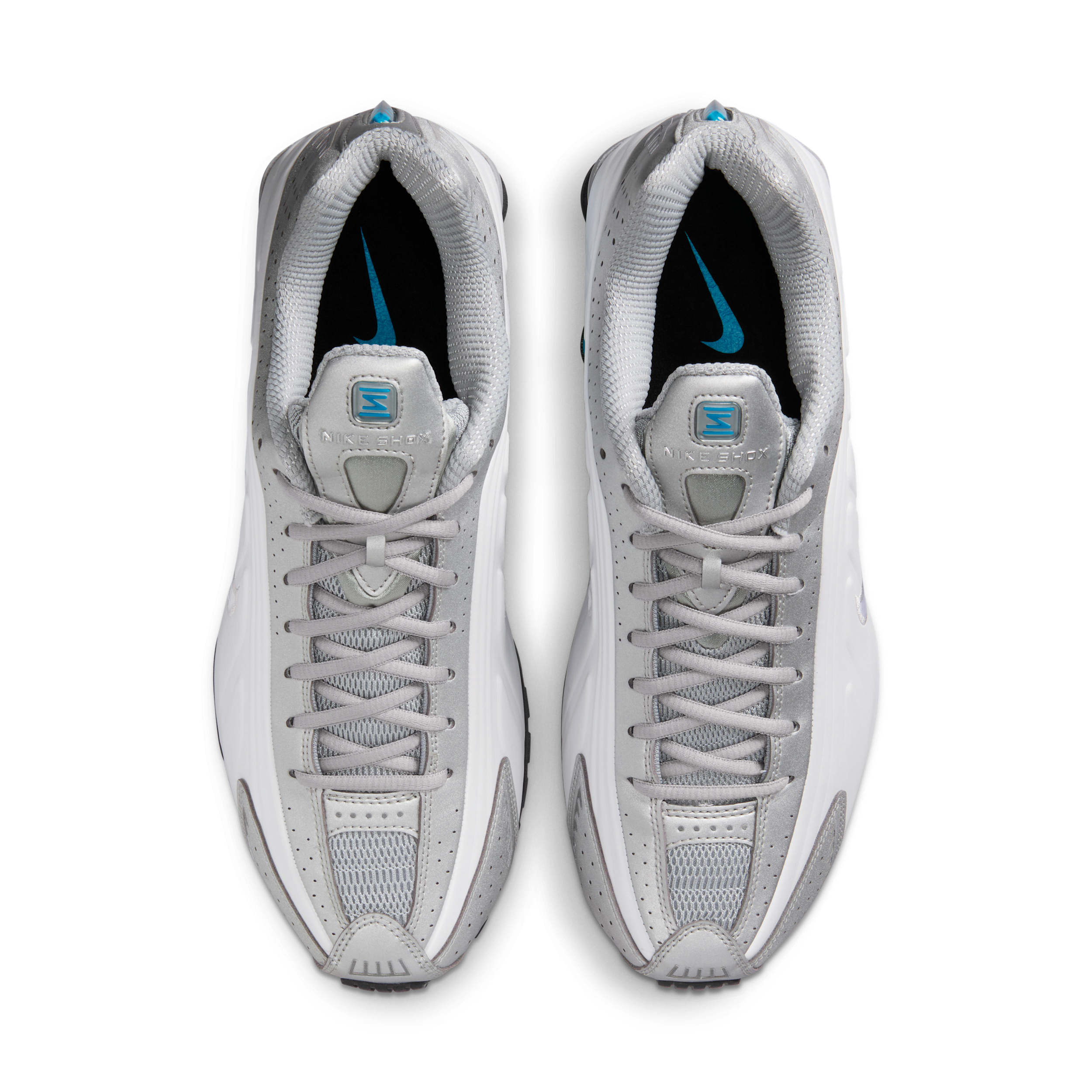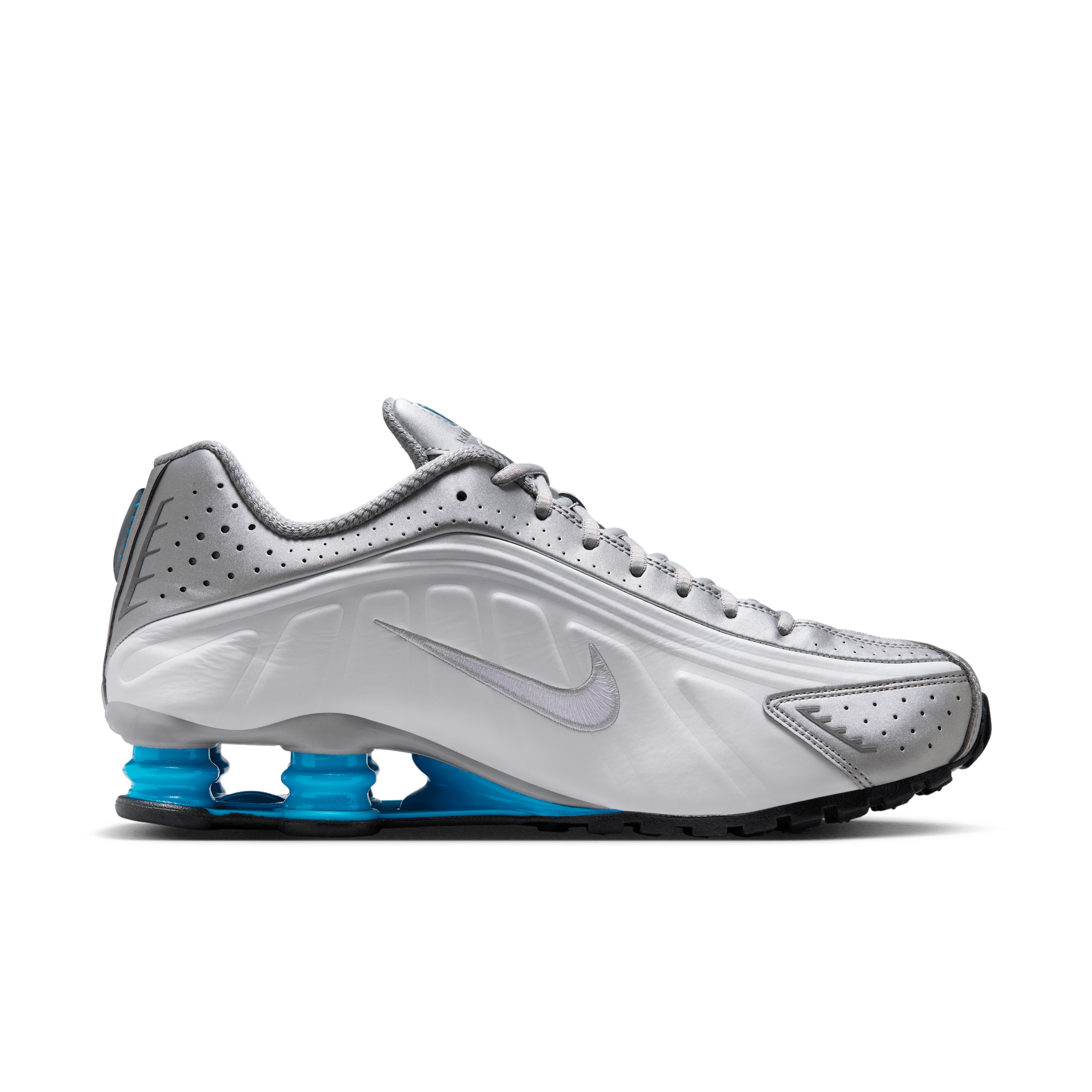 Nike Shox R4 är en uppdaterad version av ikonen från tidigt 00-tal. Den påminner om originalet med sina futuristiska designlinjer och sin funktionella dämpning. Nike Shox-pelarna i hälen fördelar vikten, maximerar den bekväma känslan och ger dig en vass look på stan.