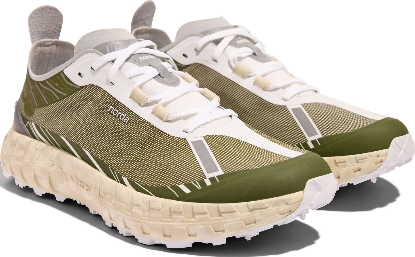 Norda 001 Glitch Herr Vår/Sommar 2025 One giant leap for trail-kind. Built with the world’s first seamless Bio-Dyneema® upper and exclusive Vibram® midsole and soleplate, the 001 is engineered with the lightest and strongest materials for mindless comfort on mindful pursuits. Designed to prove that true sustainability is found in durability. Upper – woven with bio-based Dyneema® for the highest performance, abrasion resistance and the lightest footprint. Laces – diamond design pattern with bio-based Dyneema® and recycled polyester. Hi-Vis Reflective – front to rear for 360° visibility. norda™ Lock System – Ultra light and comfortable sock, gusset construction for the ultimate fit. The foot is held in place to provide stability as you run through ever changing conditions. Insole – custom designed eTPU for the highest possible energy absorption and return. Midsole Cushioning – norda™ x Vibram® SLE. Soleplate – norda™ x Vibram® exclusive design Formation sole with Litebase® and Megagrip®. Rubber 5mm lugs.TECHNICAL SPECIFICATIONS Weight (Women’s size US 8): 232g / 8.18 ounces approx. with eTPU insole. Weight (Men’s size US 8.5): 268g / 9.45 ounces approx. with eTPU insole. Drop / Stack: 5.0mm approx. foot position / Heel: 26mm, Forefoot: 21mm.