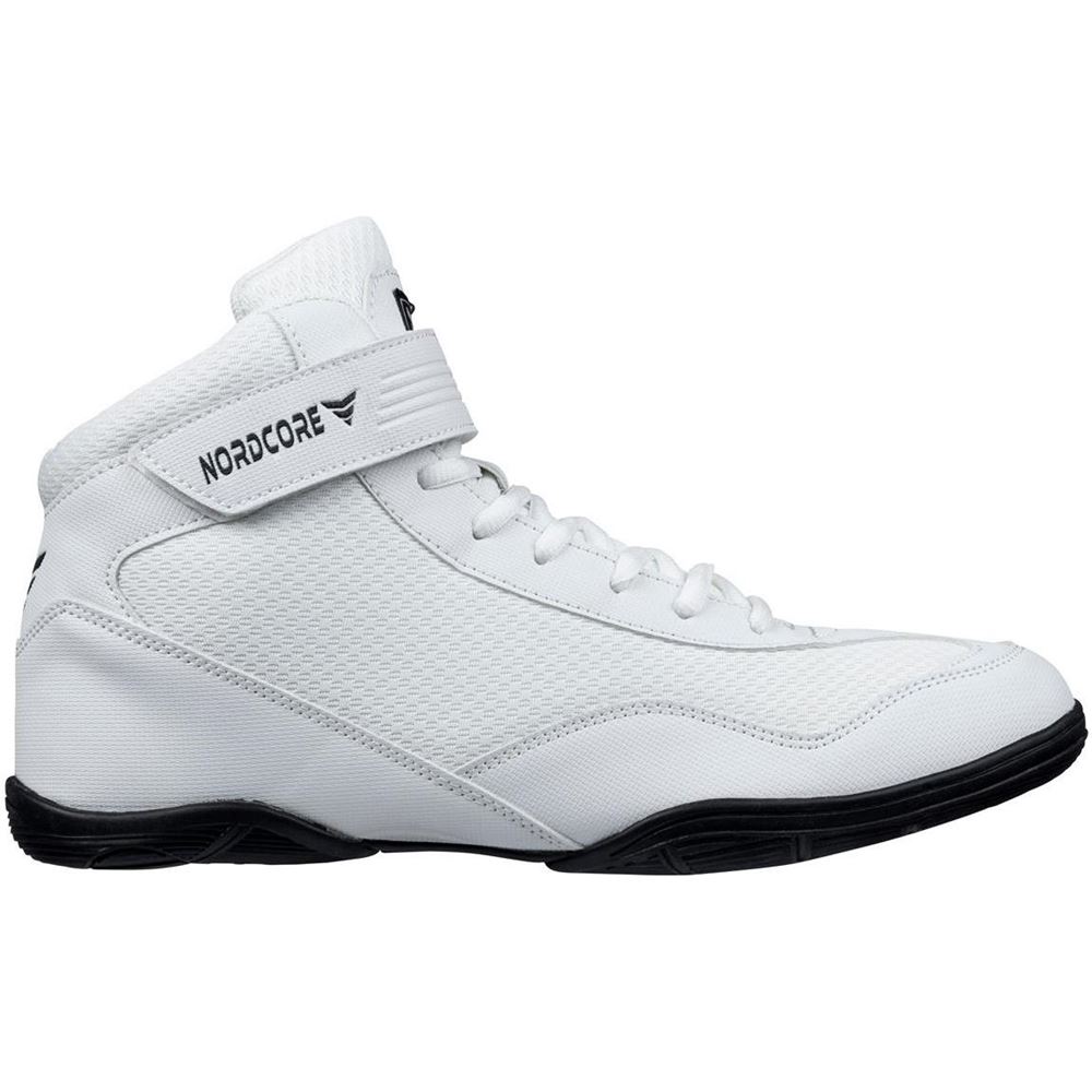 Mät först, beställ sedan! Innan du beställer – mät din fot och jämför med storlekstabellen (i bilderna). På detta sätt hittar du rätt storlek direkt och undviker eventuella returer. Så här mäter du enkelt: Ställ foten på ett papper, rita konturerna och mät den längsta punkten från hälen till tårnas spets. Lägg till 0,5–1 cm för rörelseutrymme och se motsvarande storlek i tabellen. Mellan två storlekar? Välj hellre den större. Den mindre kan bli för knapp – lite rymligare är ofta bekvämare att ha på sig. Nordcore Brottarskor för ungdomar, vit Nordcore brottningsskor för ungdomar är lätta, hållbara och pålitliga. Brottarskon är gjord av syntetiskt läder och mjukt nät, och ger en bekväm känsla och hållbarhet. Gummisulan är slitstark och ger skon den nödvändiga styvheten. Sulan är något upphöjd på skosidorna vid kudden och hälen för att säkerställa optimal dragkraft även vid fotrörelse i sidorna. På grund av den lätta gummisulan är den också väl lämpad som en inomhussko för andra sporter som innebandy eller skolgymnastik. Kardborrbandet håller snören snyggt dolda och förbättrar passformen på skon. Produktinfo: Storlekar: 31.5-35.5 Syntetiskt läder och nätväv Lätt gummisula Tejpfästning + kardborrband Lämplig även för inomhussport