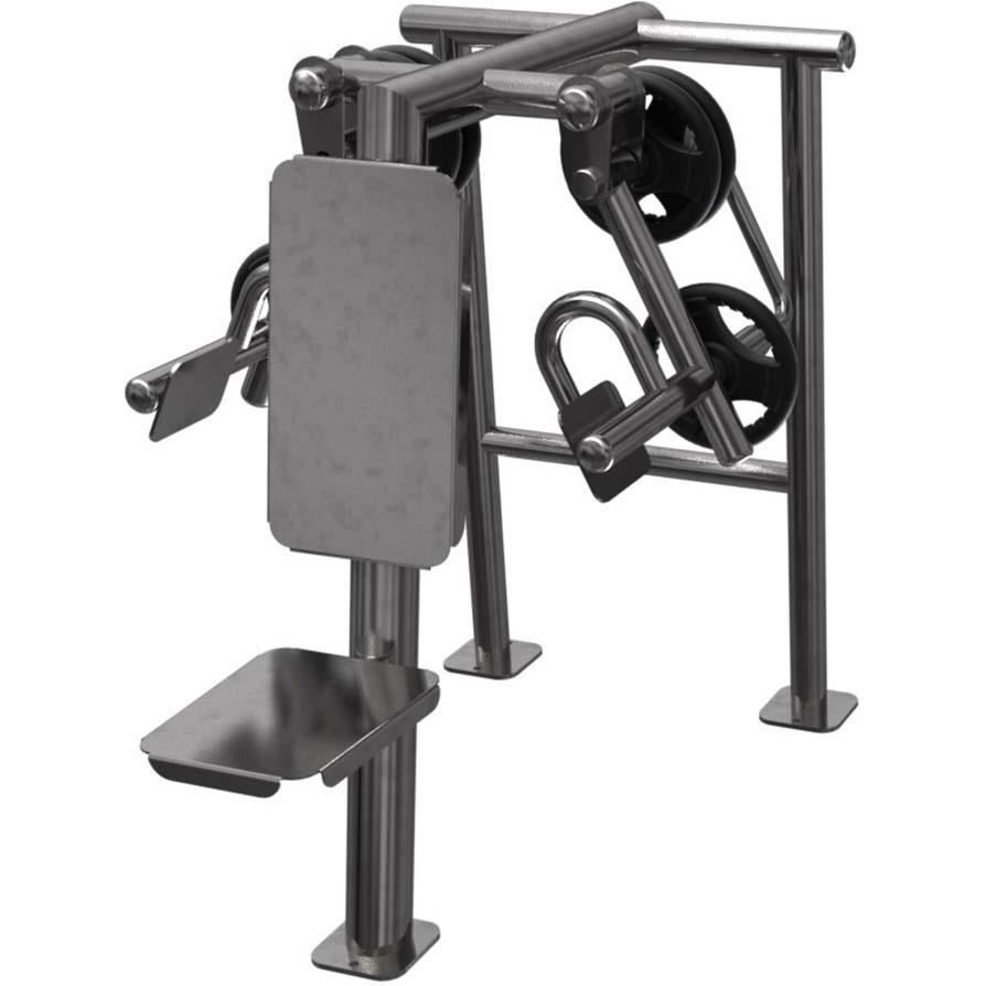 Designen tillåter för en stabiliserad torso vilket bidrar till fokus mot den specifika muskeln som avses att träna. Vinklade ingångar minimerar extern rotation under rörelse och skapar optimal anpassning till träning av medial deltoid. Obs: Den maximala tillåtna vikten för en användare är 120 kg Säkerhetsinstruktioner: Träna långsamt och smidigt. Använd inte enheten om dess yta är frostig, hal, varm eller om enheten är synligt skadad. Kvalitet: Kommersiell Produktserie: GCE Series Bredd: 900 mm Höjd: 1206 mm Längd: 1234 mm