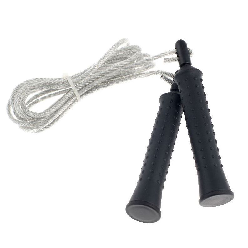 Ett hopprep med stålvajer. Fotarbete och kordination är bara några av fördelarna som kommer när man tränar med hjälp av hopprep. Om du någonsin sett en proffsboxare hoppa hopprep, så ser man att de använder det både som fysträning, uppvärming eller som ren fettförbränning. Ta med dig ditt hopprep och du kan träna oavsett vart du befinner dig. Specifikationer Vikt: 140 gram Längd: 300 cm Handtag: 14 cm