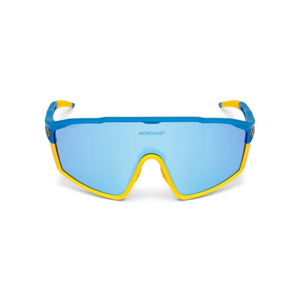 Northug Sunsetter Standard Blue/Yellow tillhör Sunsetter- serien och är den mest prisvärda versionen av sportglasögon från Northug. Solglasögonen täcker de flesta behov av träning och aktivitet. Solglasögonen är flexibla med justerbara näsklämmor och skalmar. De kan därför anpassas efter ditt huvud. Underram kan tas bort för att tillföra mer ventilation och ger samtidigt ett annat utseende. Glasögonen kommer endast i en storlek, och passar båda könen. Låg vikt, flexibel passform, hög komfort Vatten- och fettavvisande Anti-dimma och anti-smuts Högt UV-skydd Reptålighet Northug Sunsetter kommer med spegellinsen Revo Blue (Kategori 3, ljusgenomsläpplighet 10-15%). Den skyddar bra mot solen och ger dig god komfort. Northugs logotyp är ingraverad på linsen. Linsen är helt okrossbar!